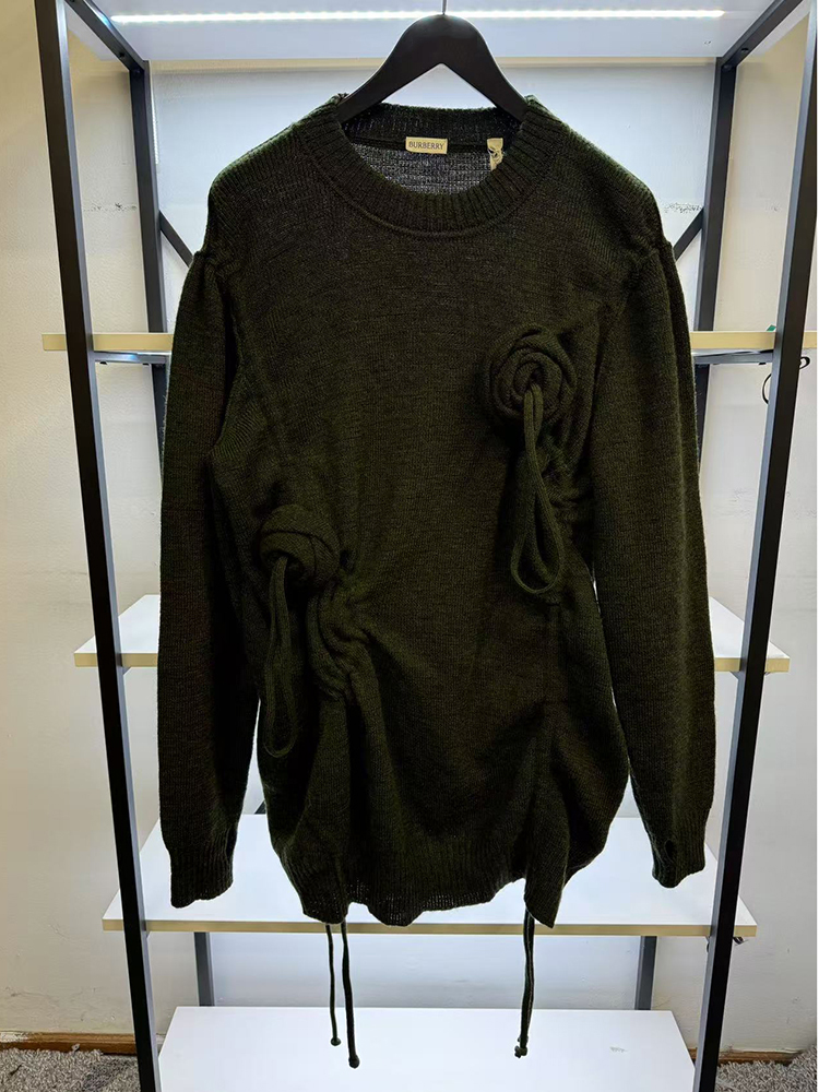 BUR*E**Y/巴*莉 意大利产 女棉羊毛长袖立体玫瑰花套头针织连衣裙