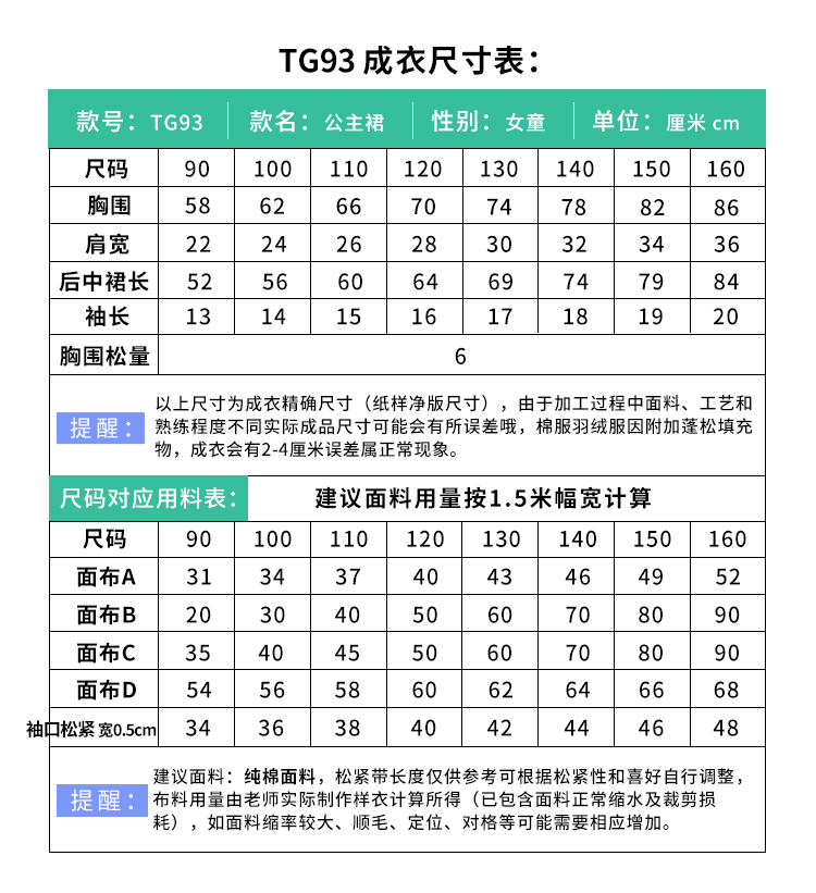 裁缝学苑TG93 白雪公主裙女童连衣裙纸样童装儿童衣服样板夏