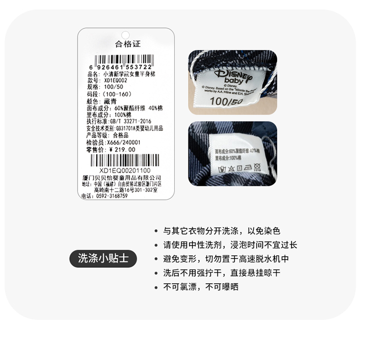 迪士尼宝宝春秋女童半身裙XD1EQ002