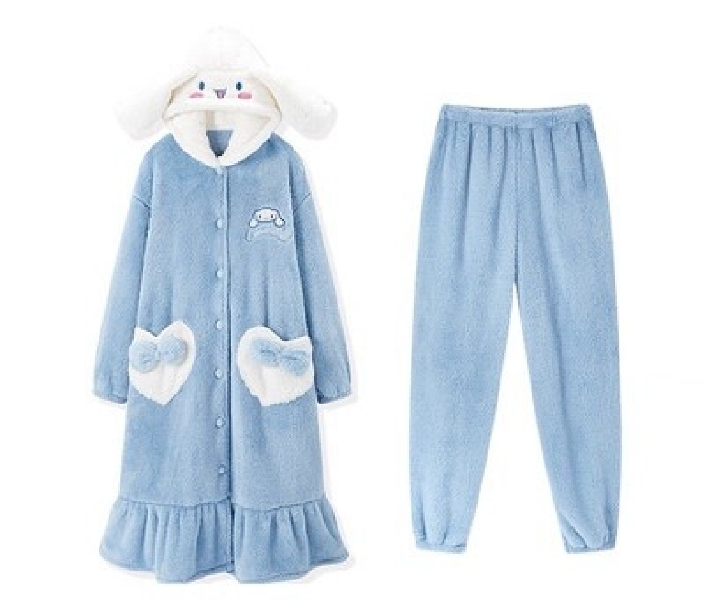 可爱珊瑚绒睡衣女2023年新款秋冬季大耳狗睡袍加厚长款浴袍myy04