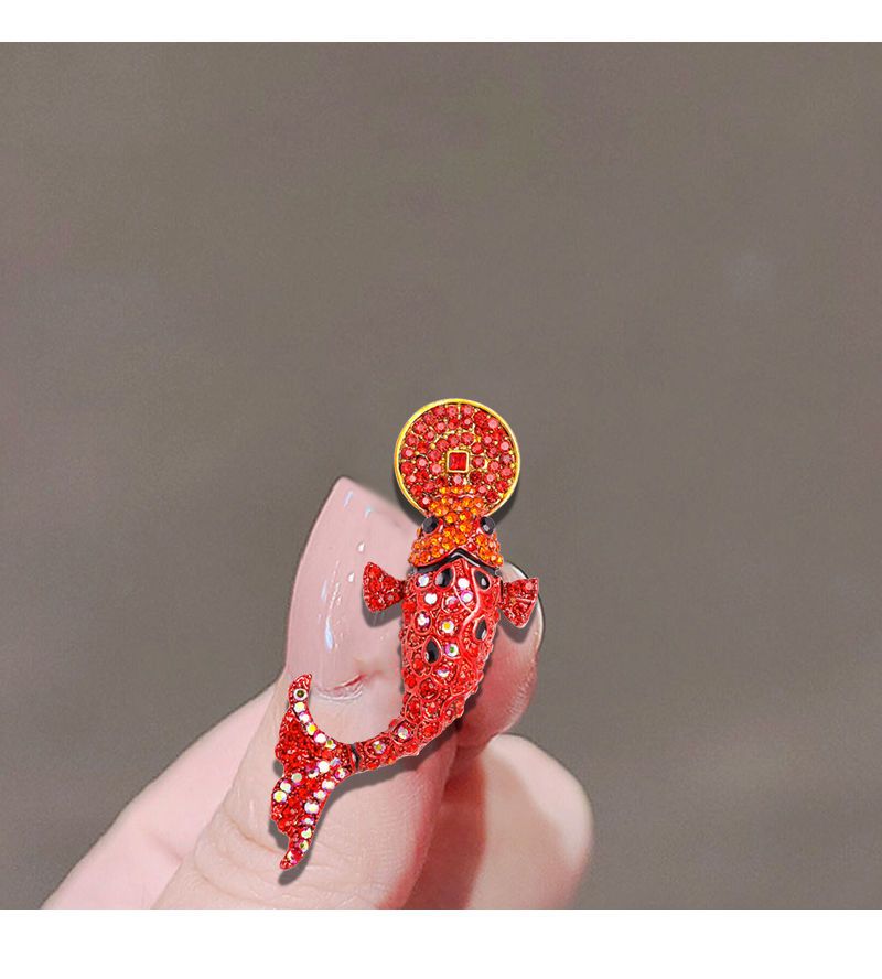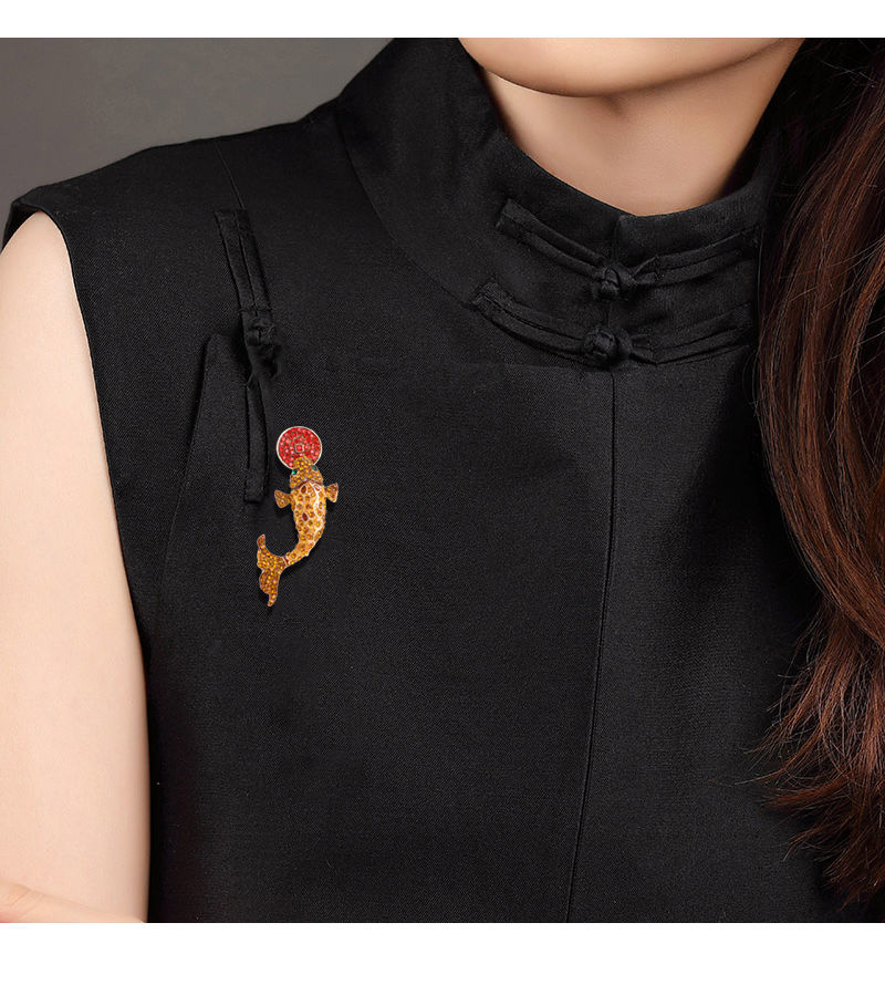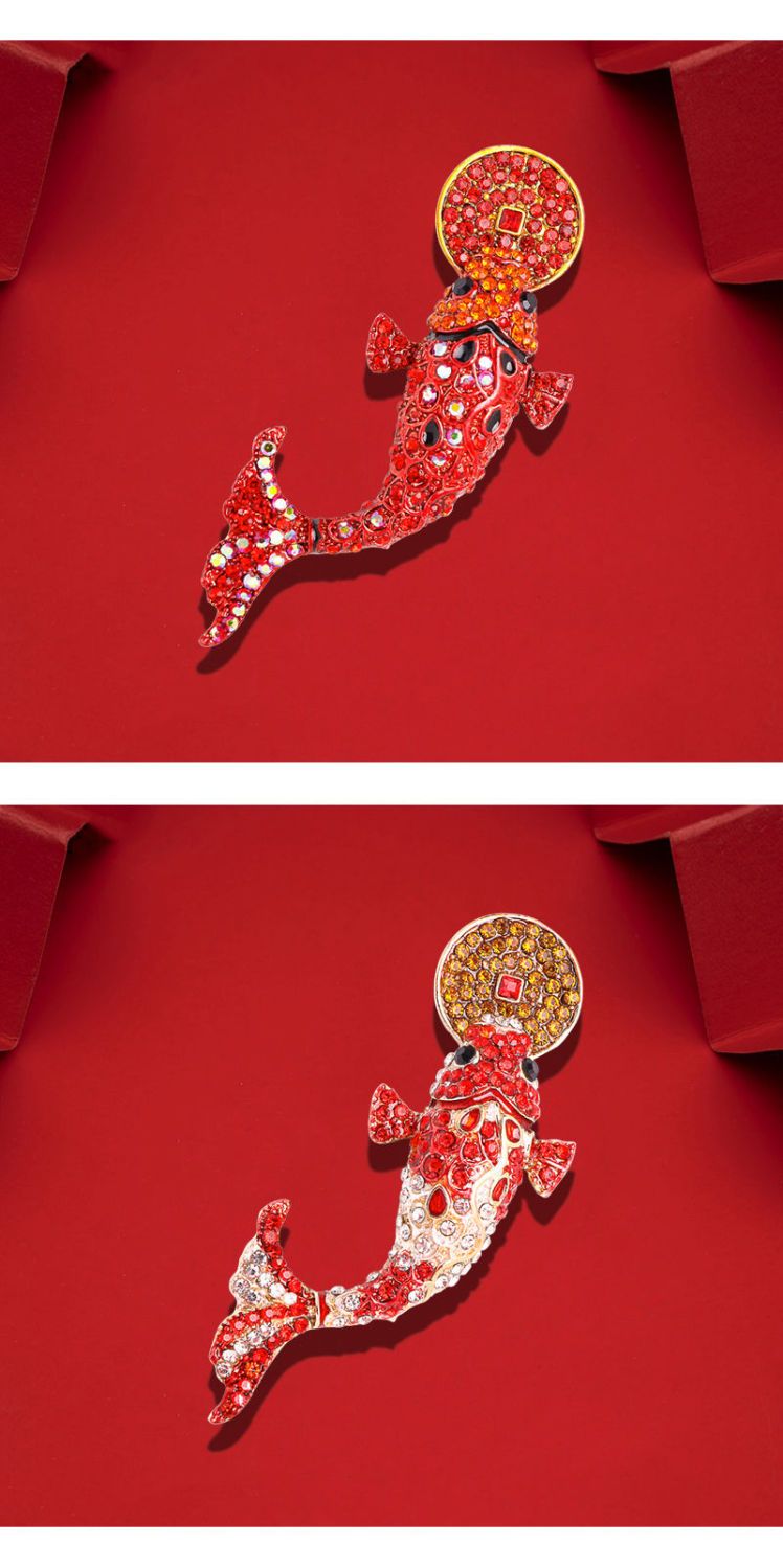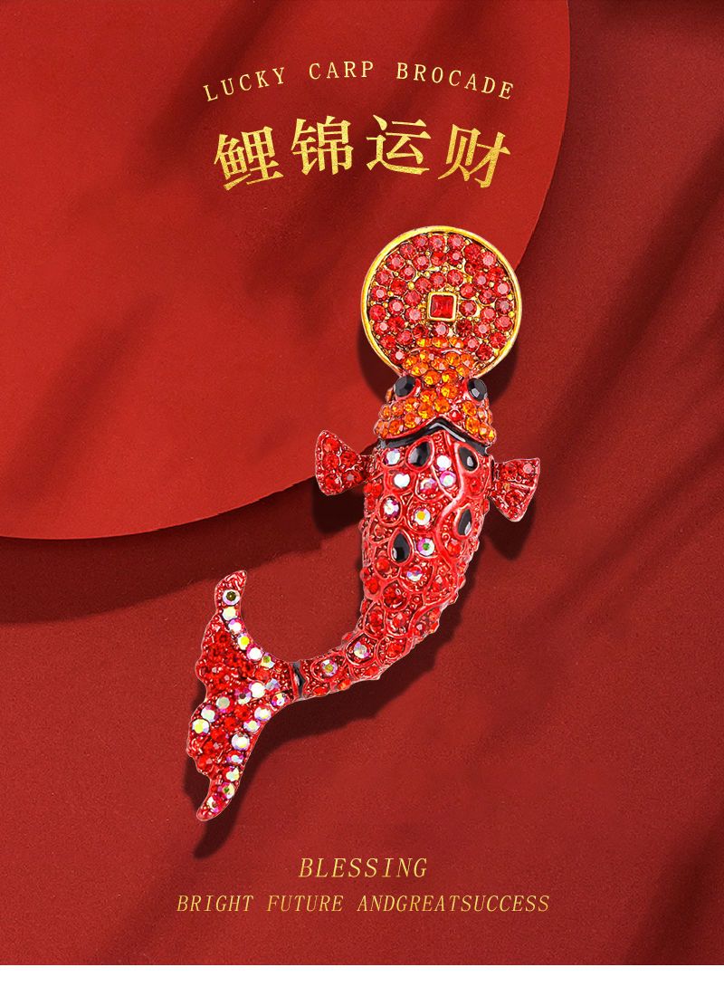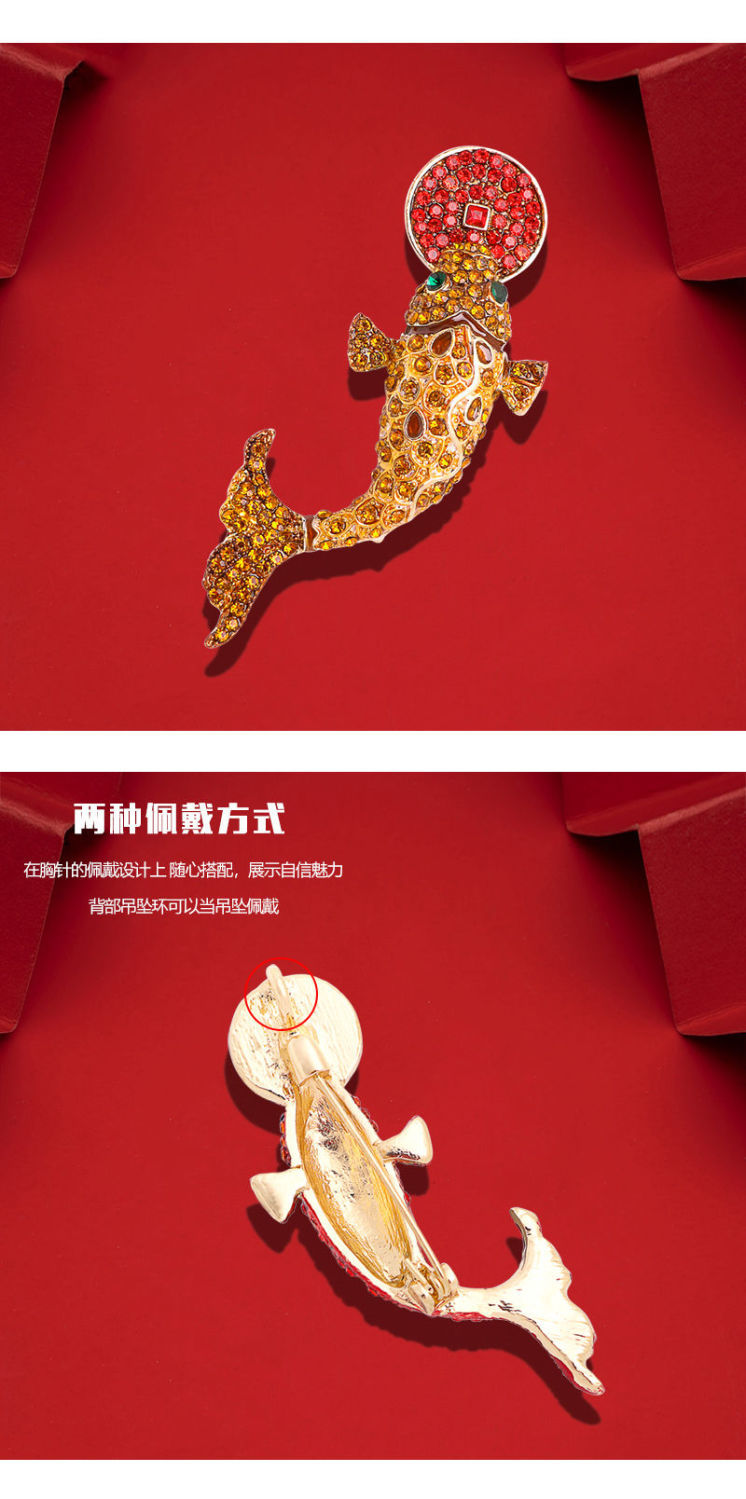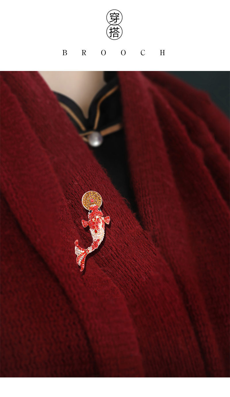 中国民族风饰品旺红色锦鲤气质复古胸针可爱女配饰