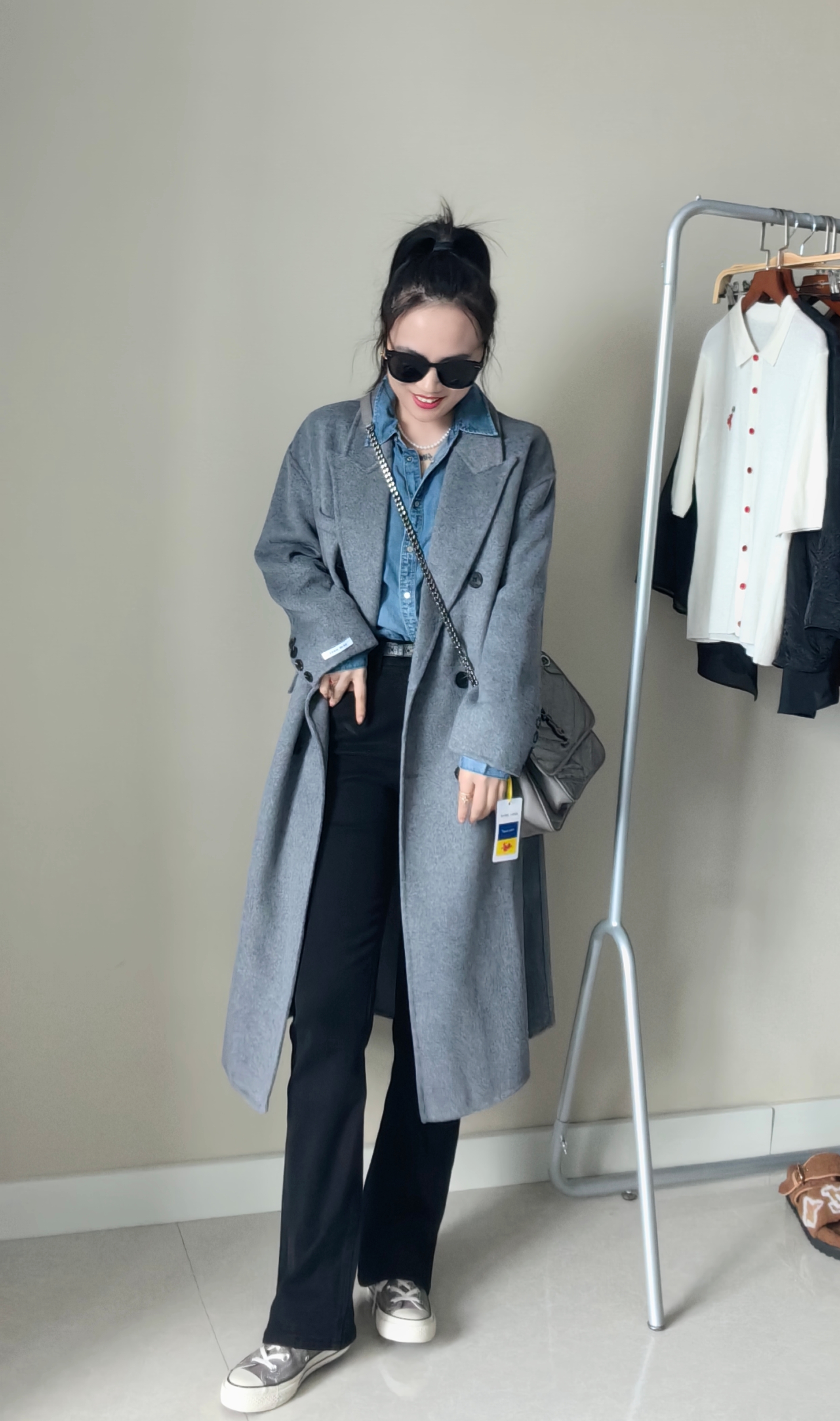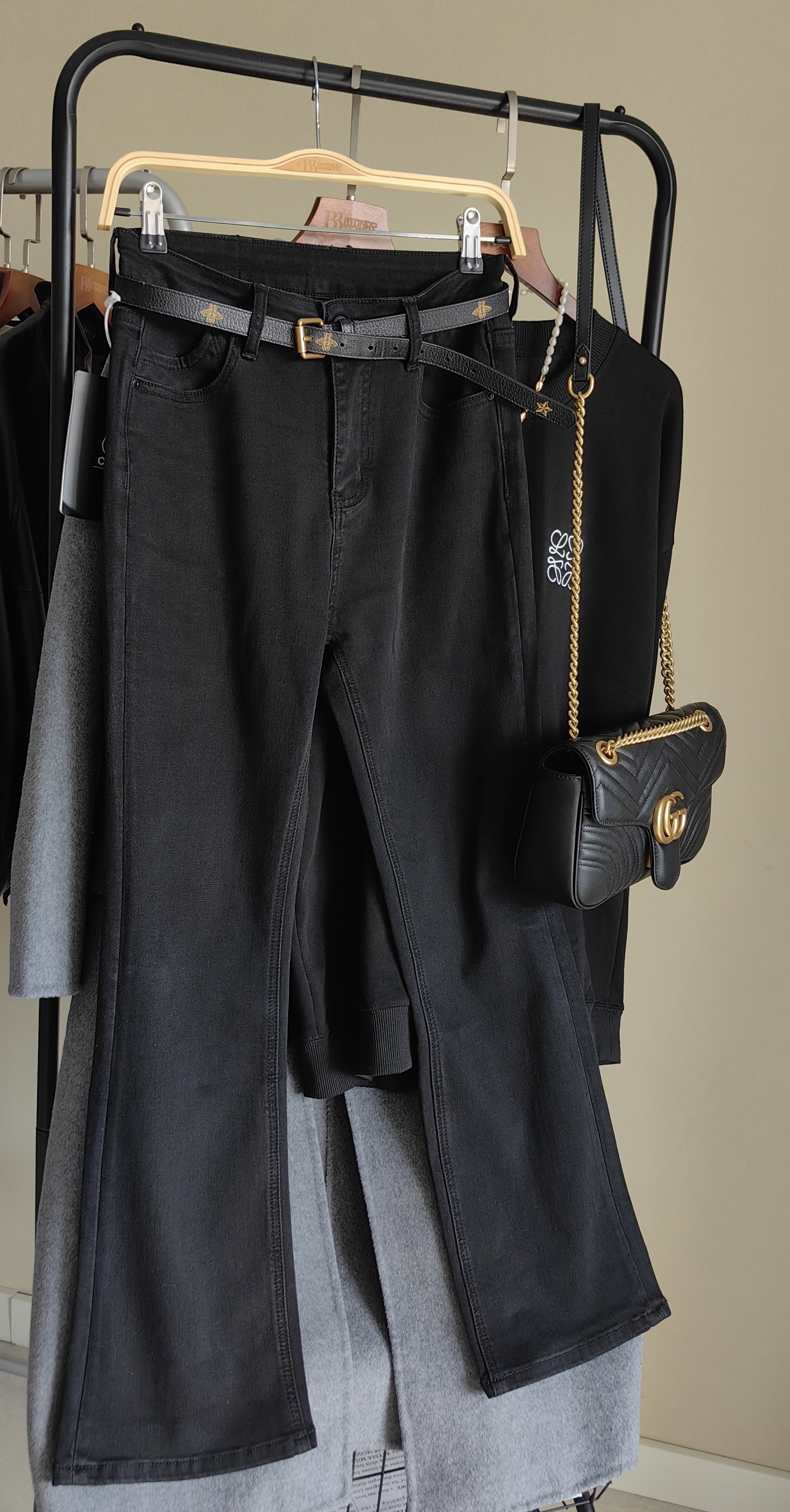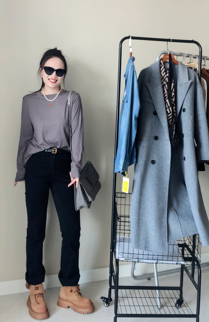 微喇的效果自然又相当显瘦,裤子在品质感、