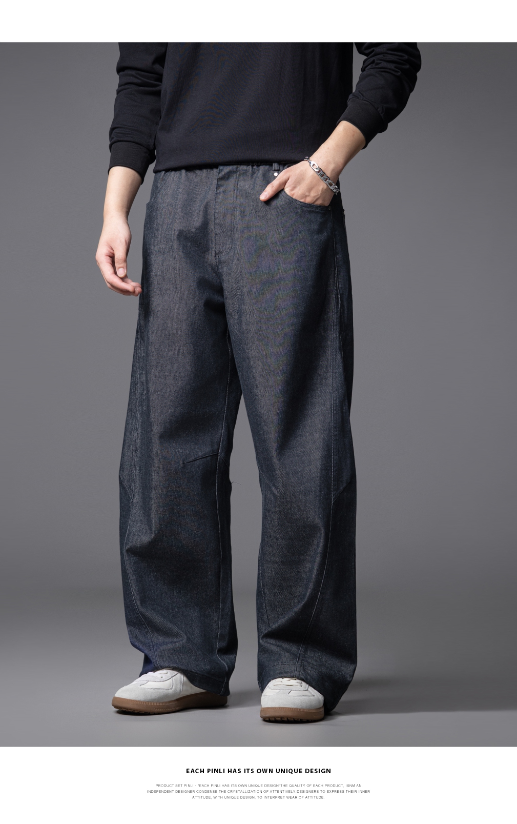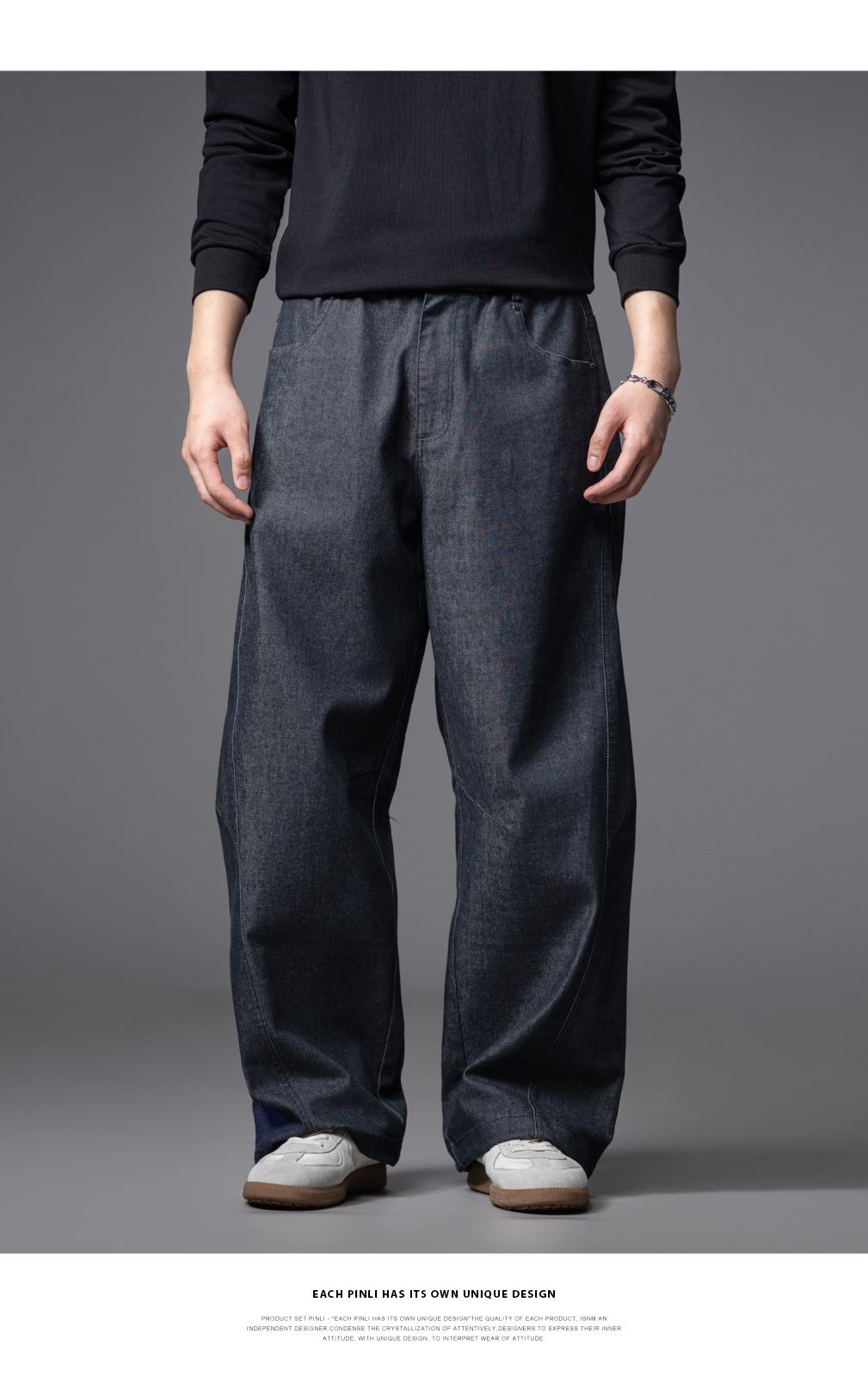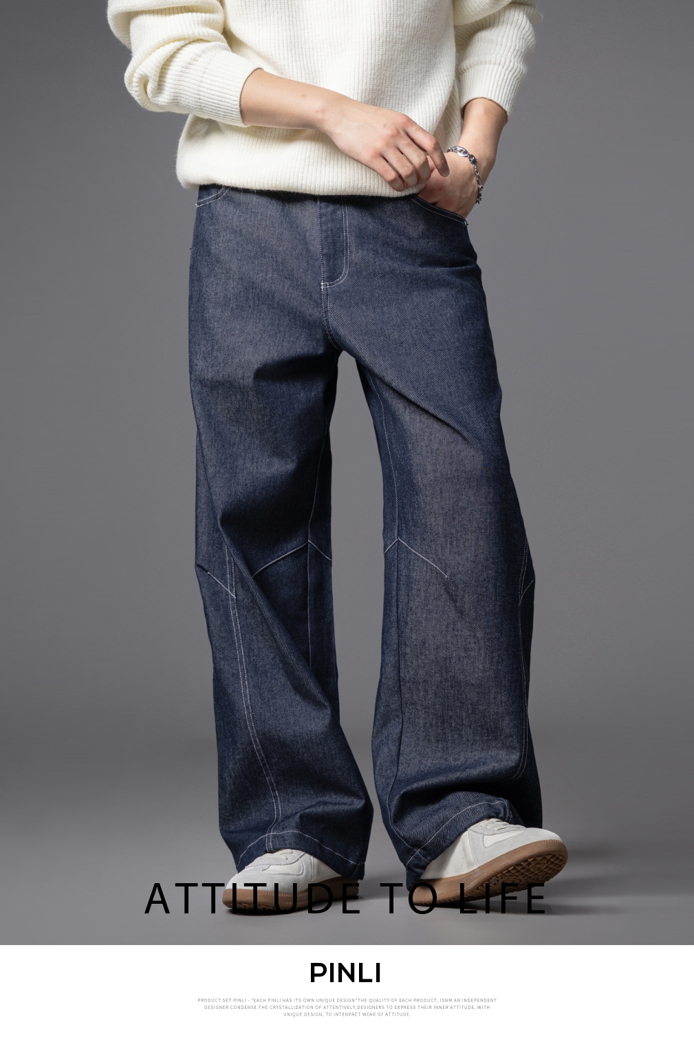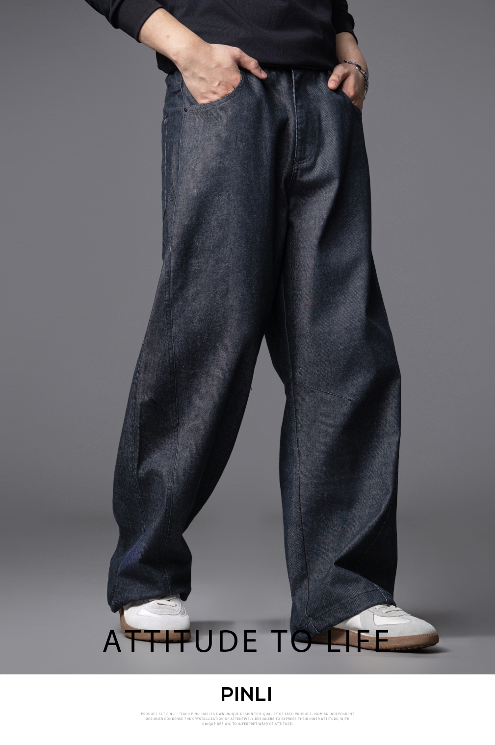 PINLI品立2025秋季新款男士宽松直筒休闲阔腿牛仔长裤GD253116124