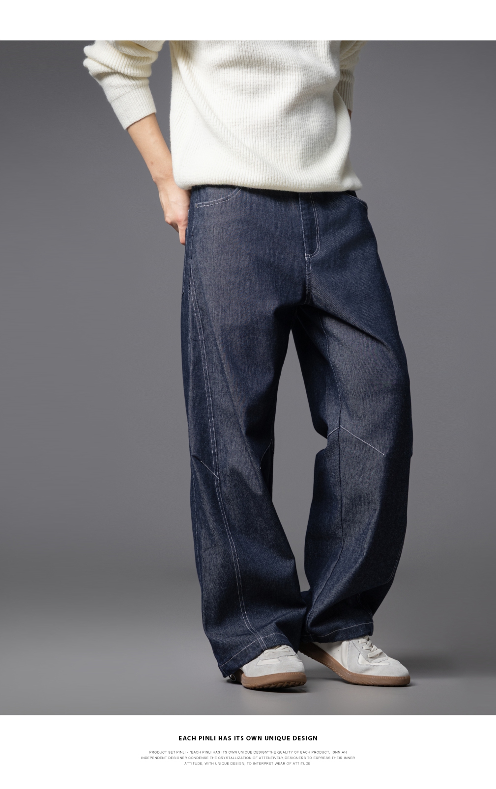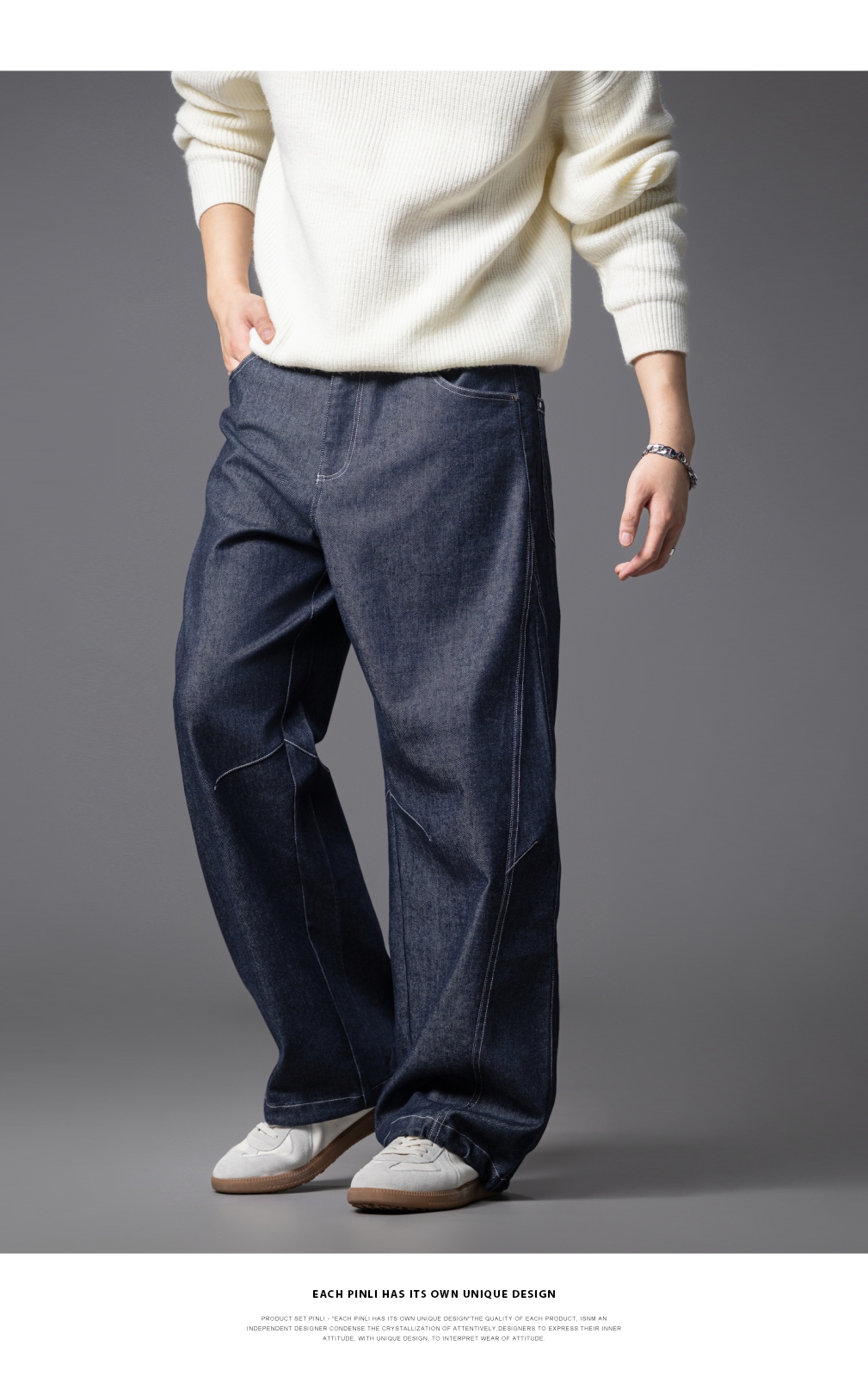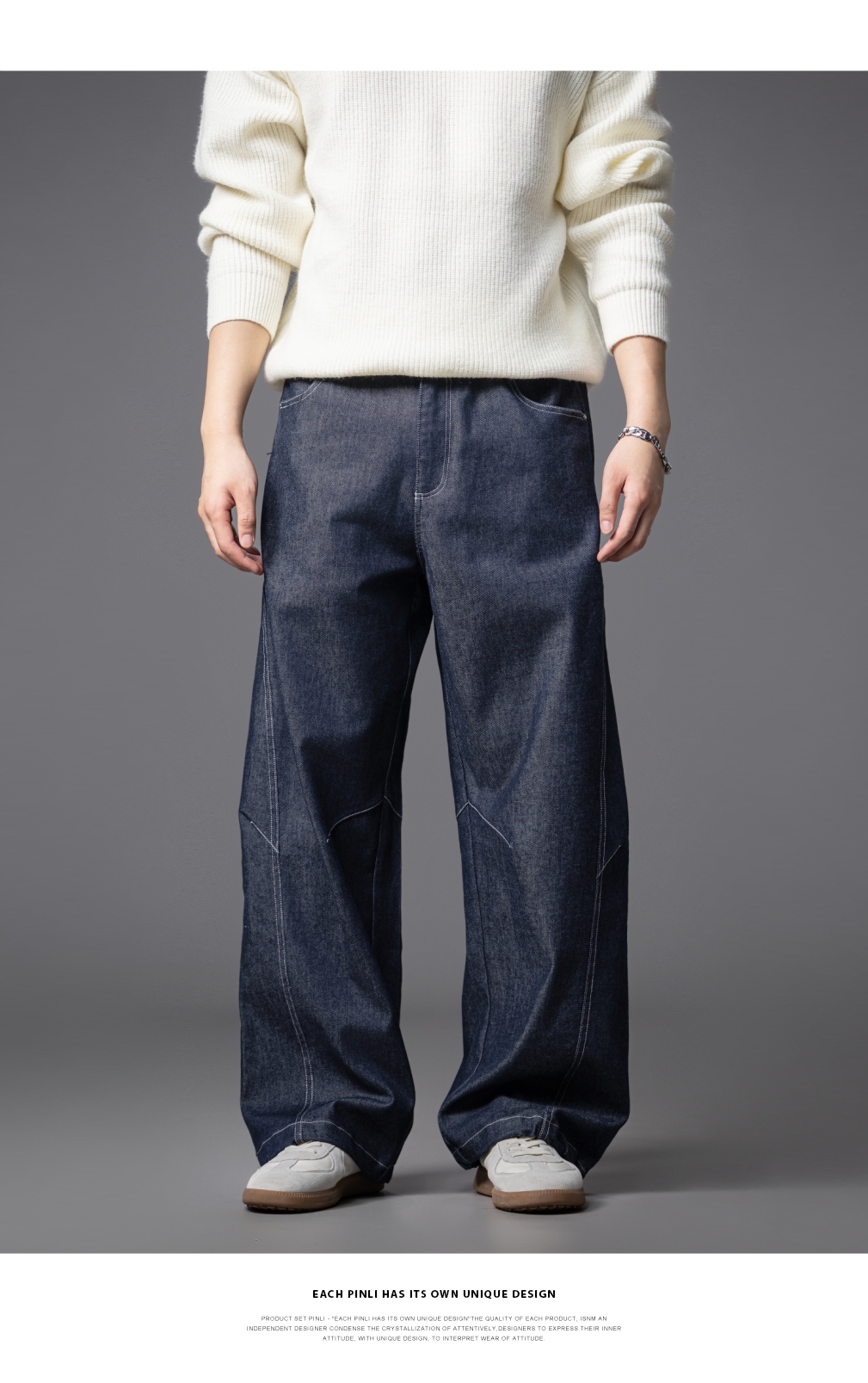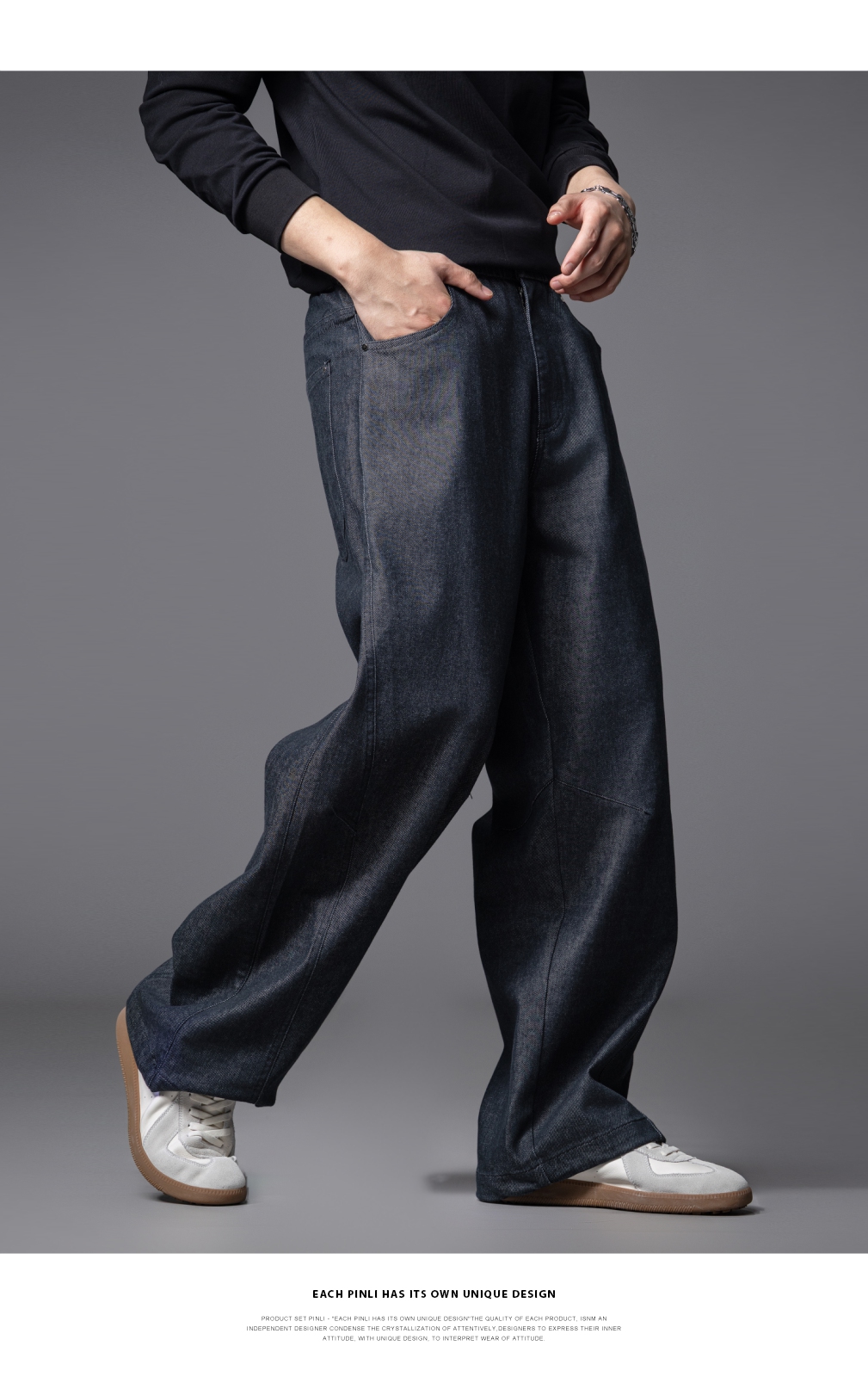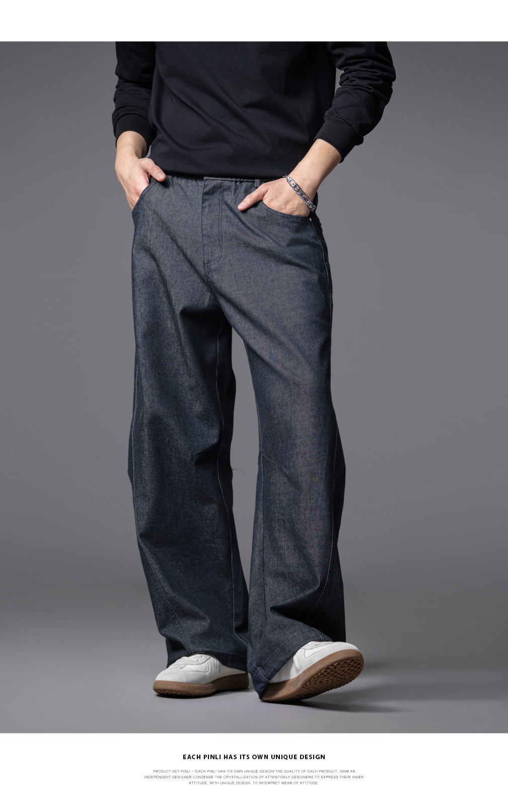 PINLI品立2025秋季新款男士宽松直筒休闲阔腿牛仔长裤GD253116124