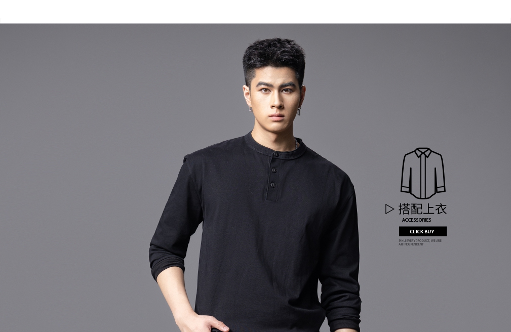 PINLI品立春季新款潮牌半高领长袖T恤男士肌理感纯色休闲上衣B253111023