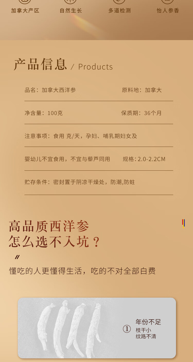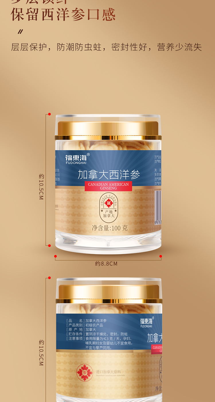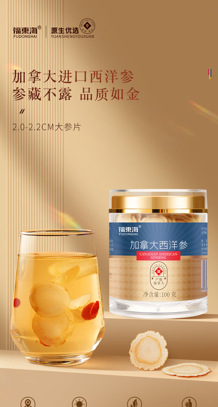 福东海 加拿大西洋参片100克2.0-3.0cm 加拿大进口花旗参片人参皂苷西洋参含片 滋补品自用送长辈实用礼品