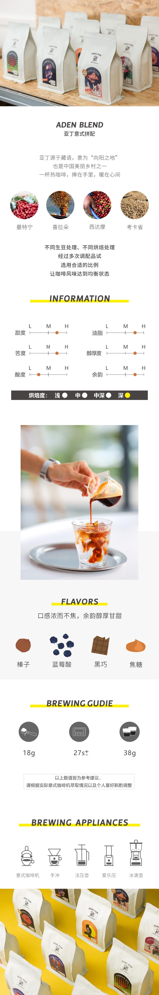 诚品咖啡亚丁金奖意式拼配 低酸香甜醇厚回甘 阿拉比卡深烘拼配