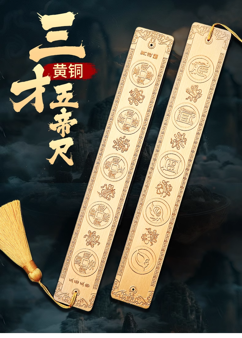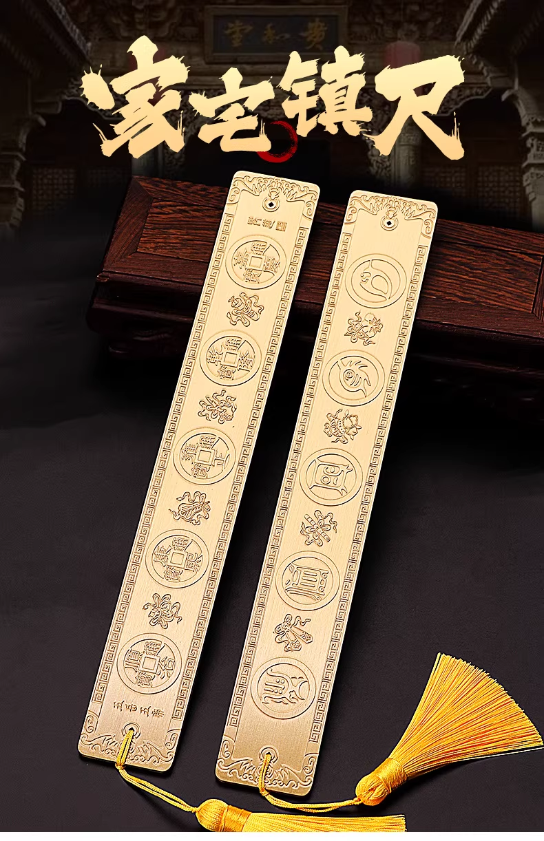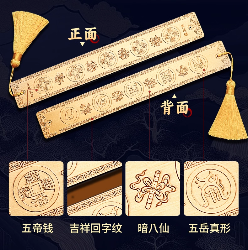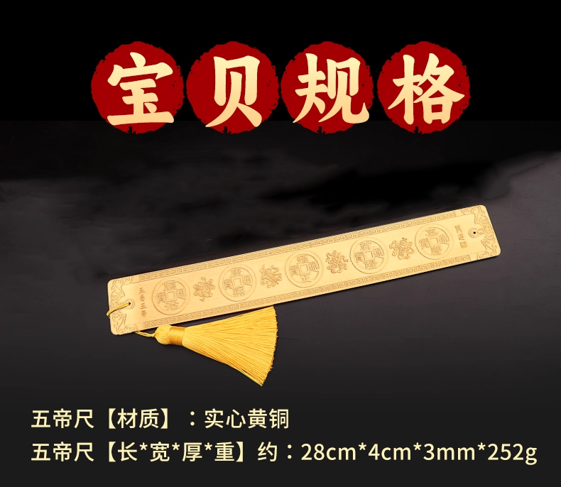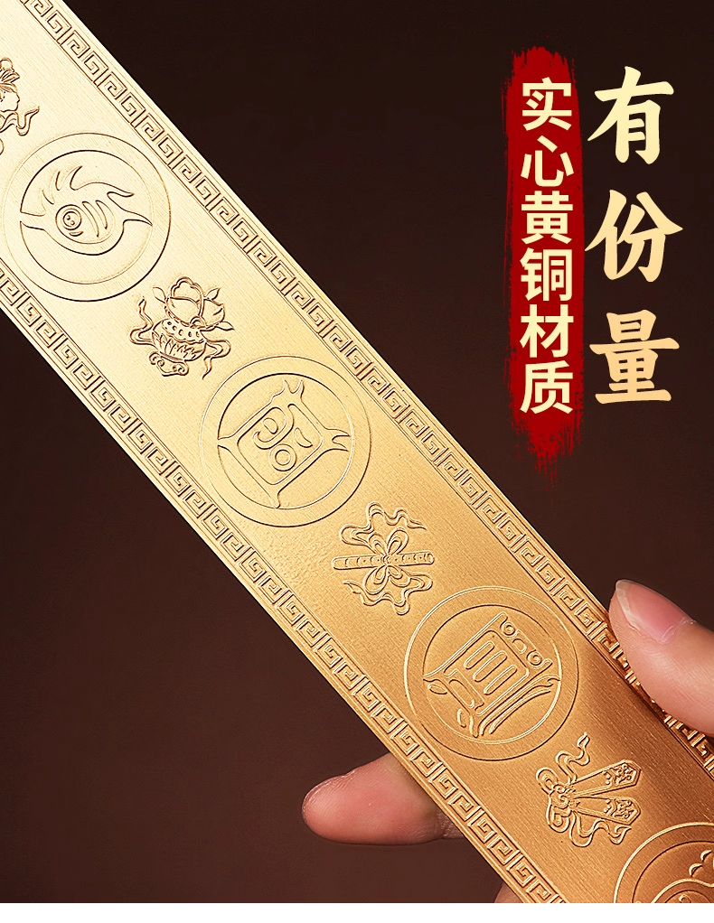 黄铜三才五帝尺,五岳真形图,压门槛平安挂摆件