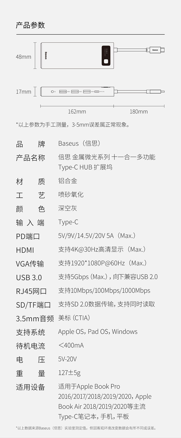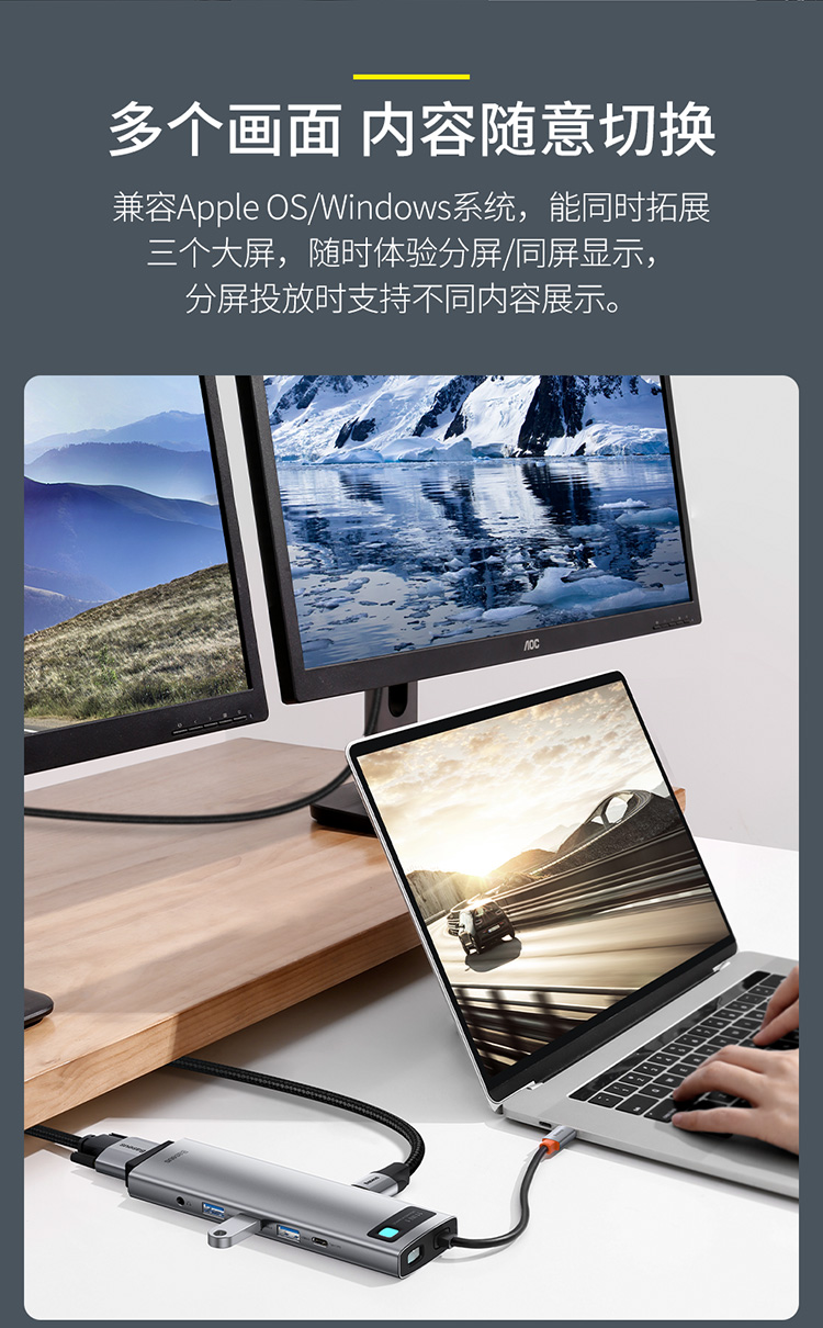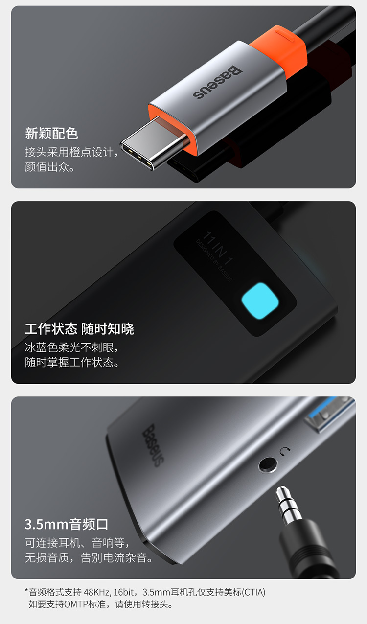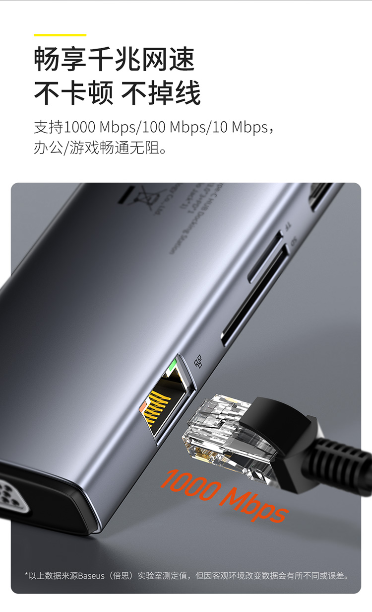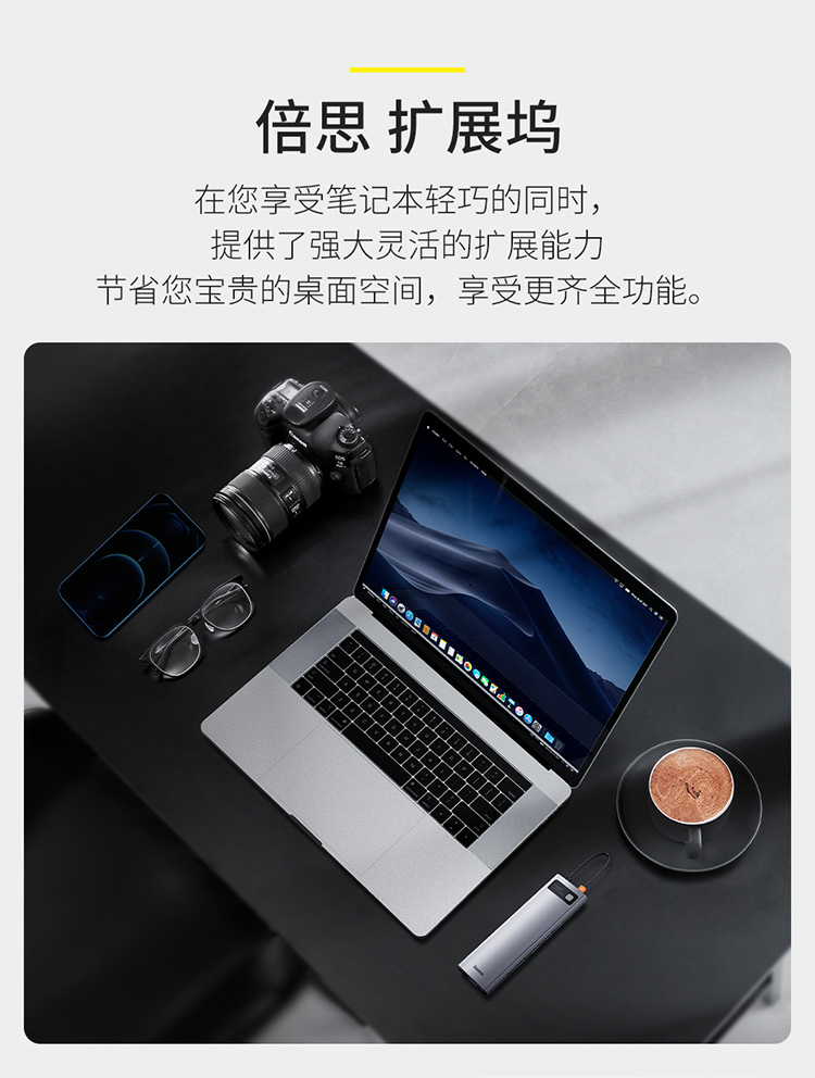倍思 金属微光系列 十一合一多功能Type-C HUB 扩展坞(Type-C to HDMI*2+USB3.0*3+PD*1+RJ45*1+SD/TF*1+VGA*1+3.5mm*1)