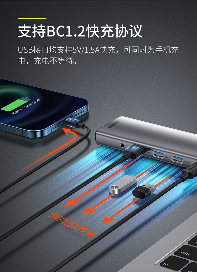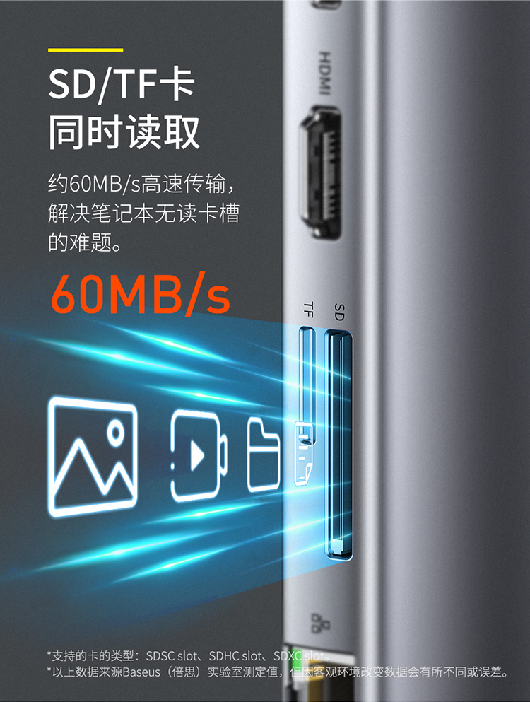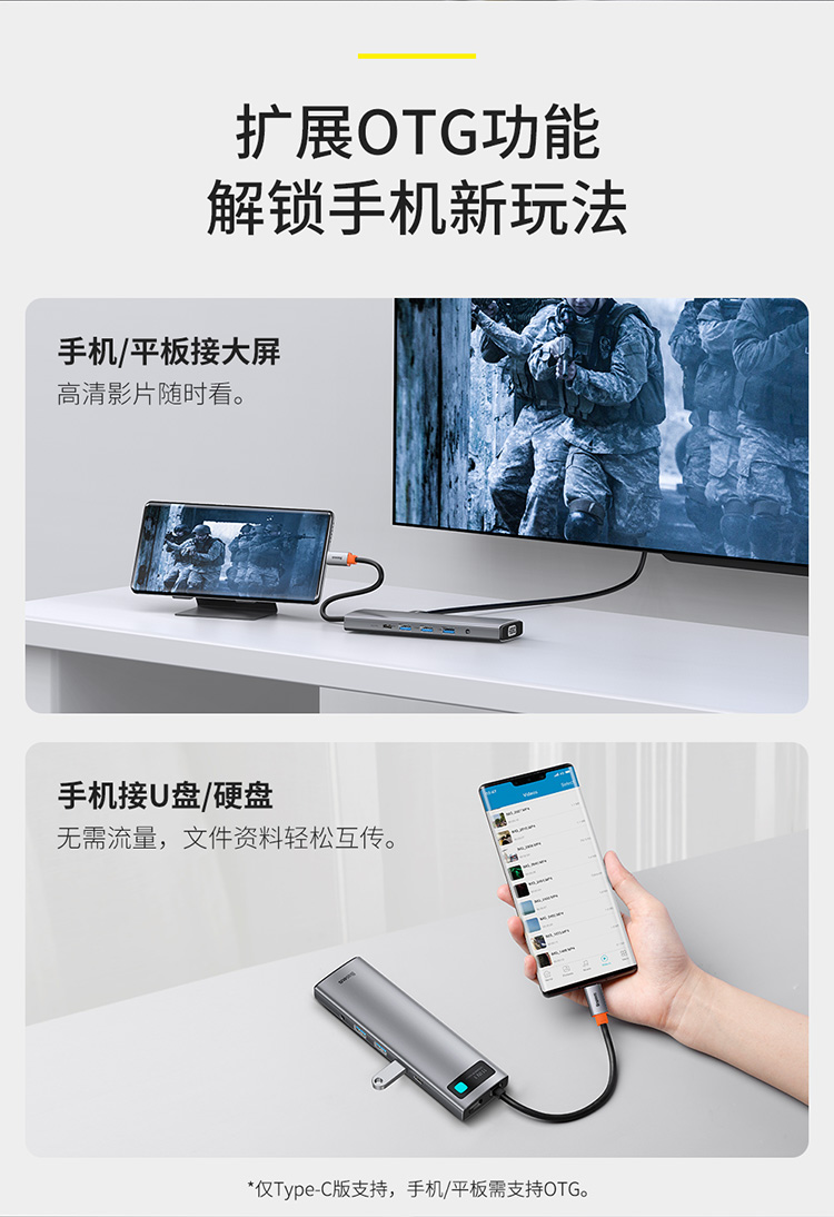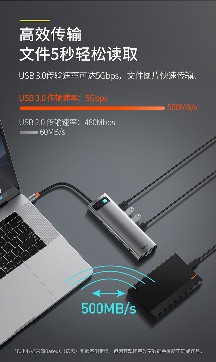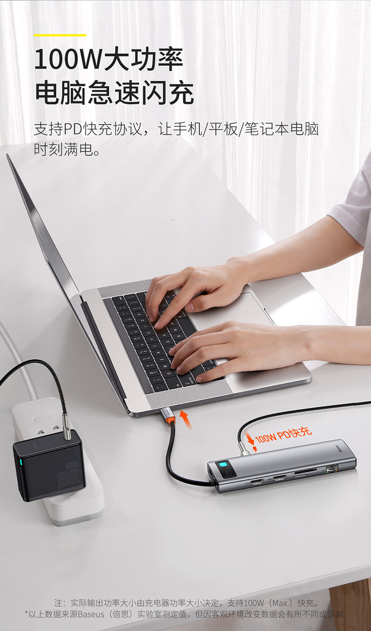 倍思 金属微光系列 十一合一多功能Type-C HUB 扩展坞(Type-C to HDMI*2+USB3.0*3+PD*1+RJ45*1+SD/TF*1+VGA*1+3.5mm*1)