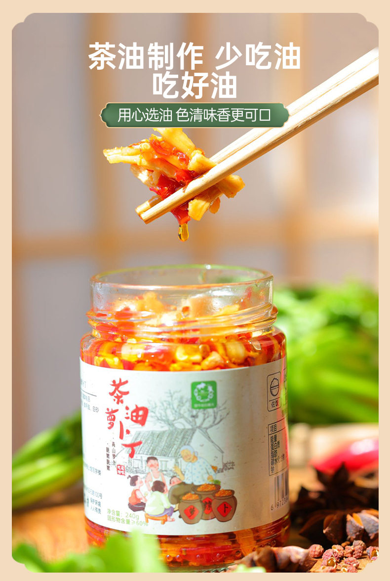 2瓶超好吃超下饭的 茶油外婆菜 茶油萝卜丁