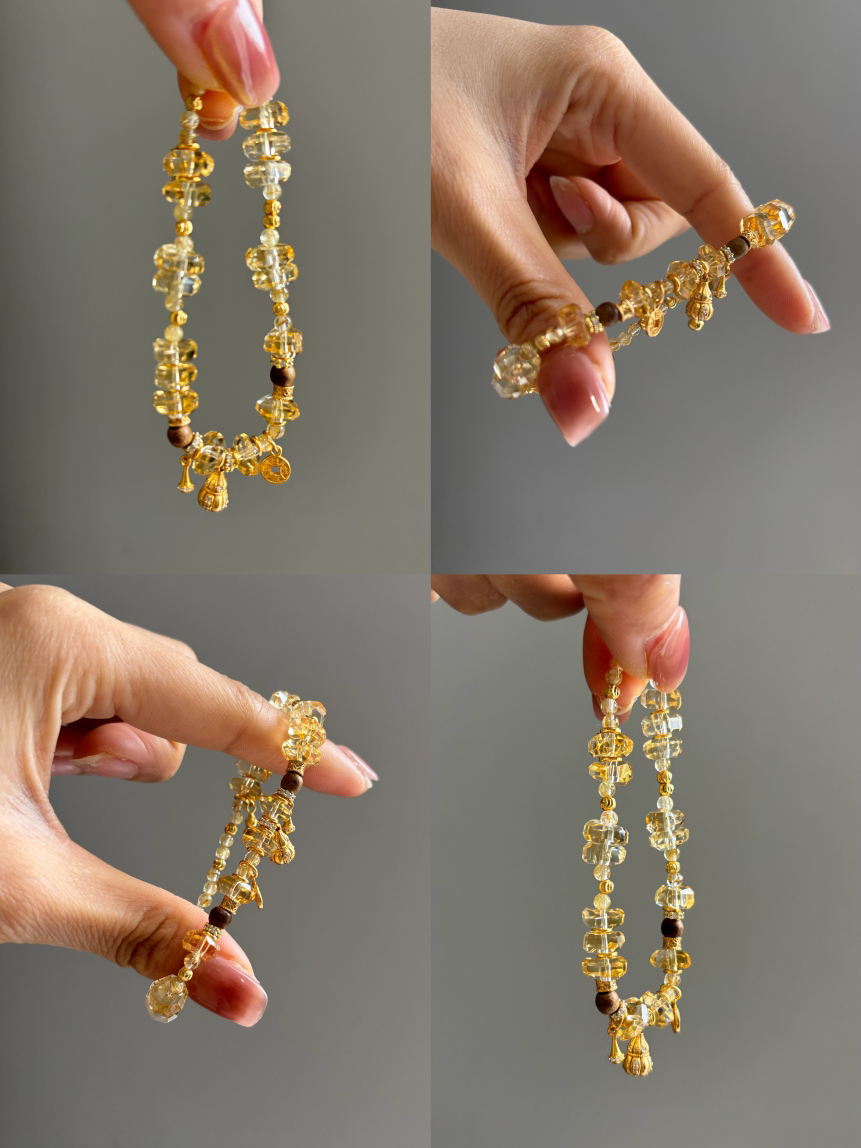 璀璨流金~天然巴西黄水晶手串葫芦等925银镀金/金发晶/沉香手串手链 增强决断力和自信心 吸金招财