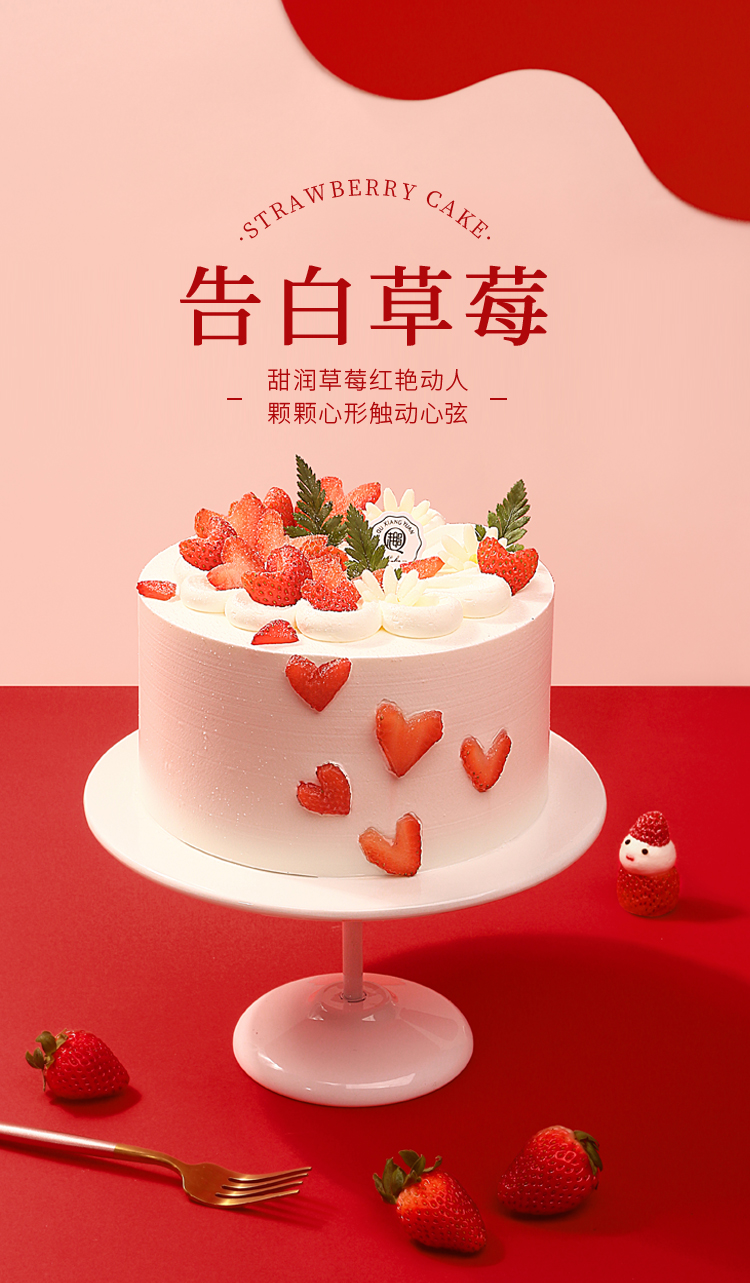 告白草莓6寸高款乳酪动物奶油蛋糕