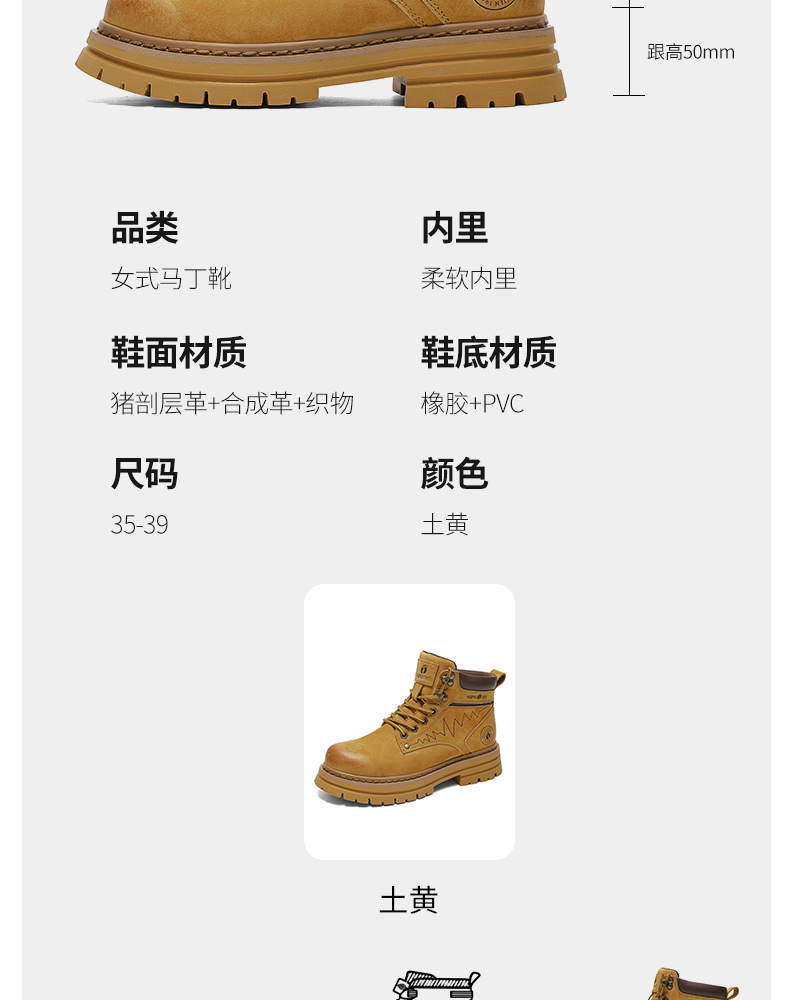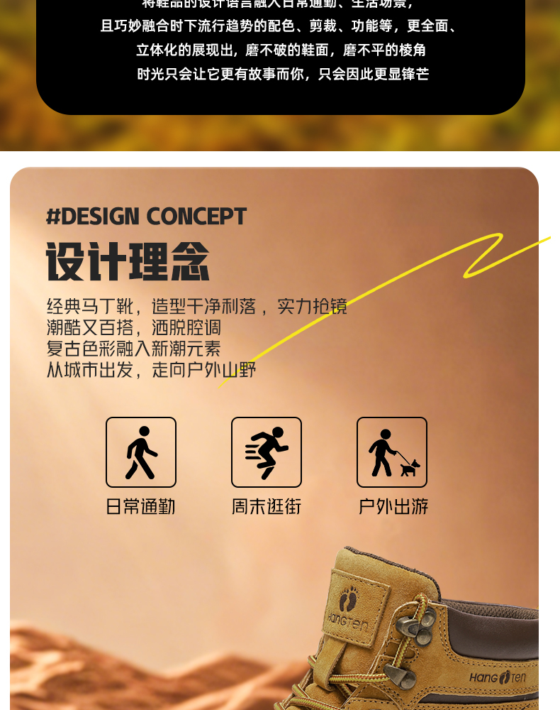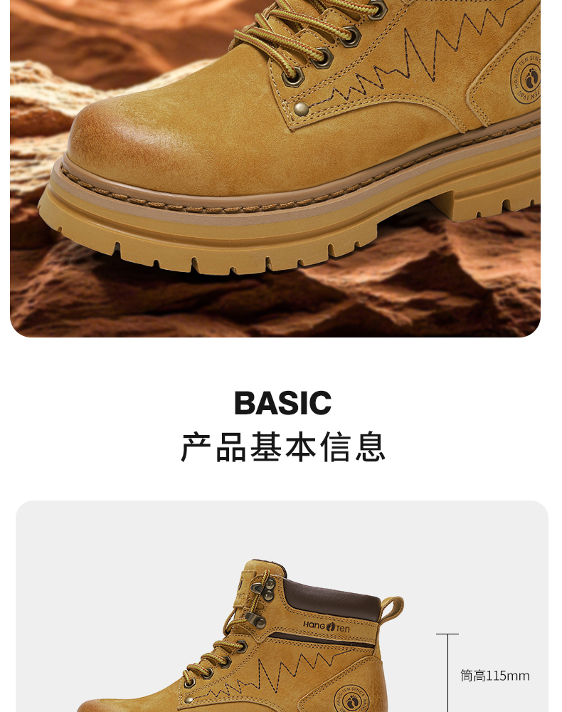 HANGTEN欢腾秋冬美式复古女鞋工装风舒适厚底户外马丁靴G5282016DD