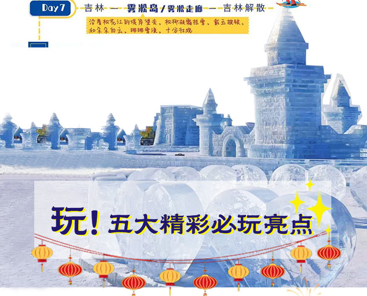 【冰雪盛宴经典线】哈尔滨-东升-15公里穿越雪乡-冬捕-长白山-滑雪-雾凇岛7日计划