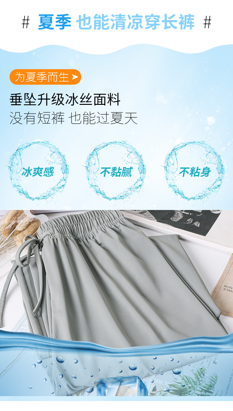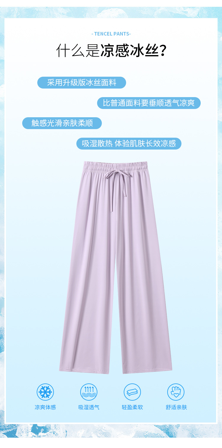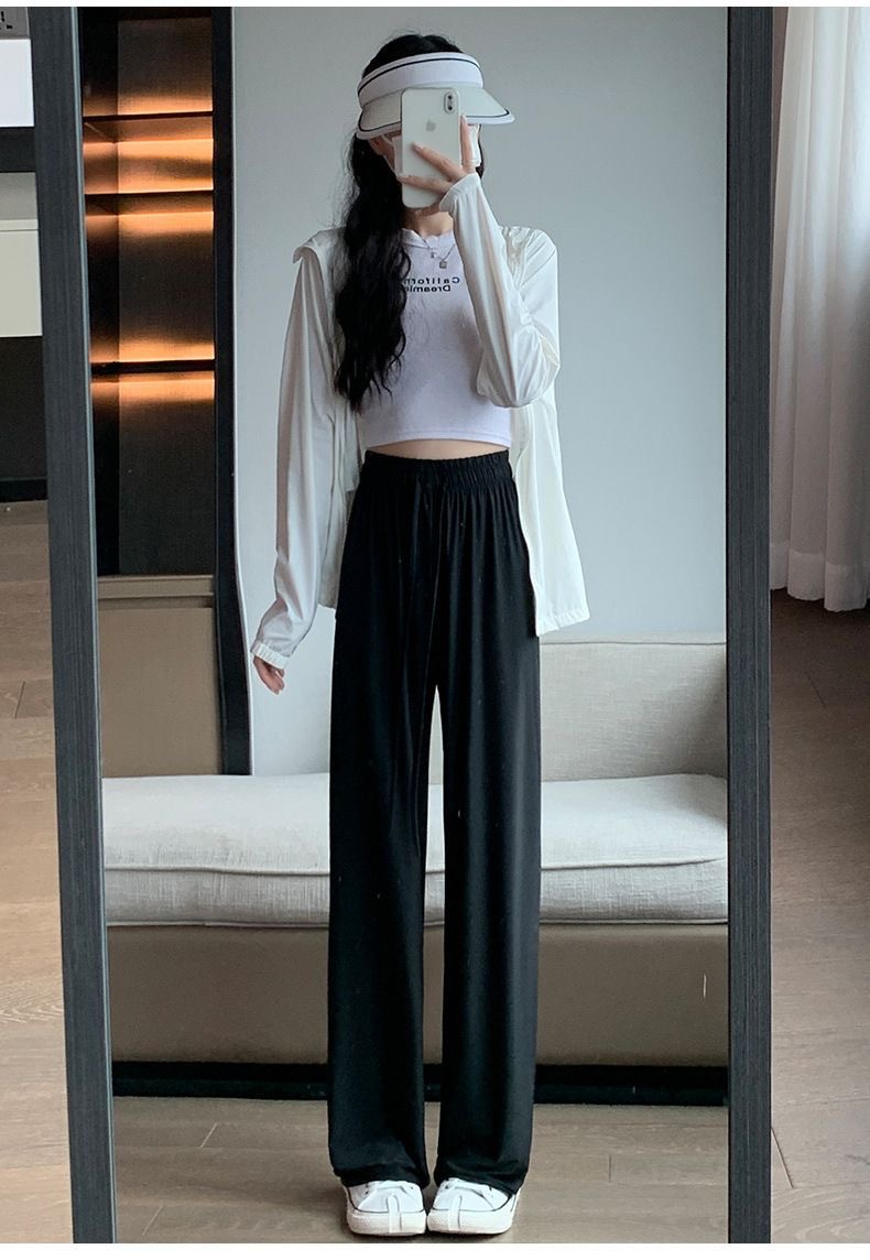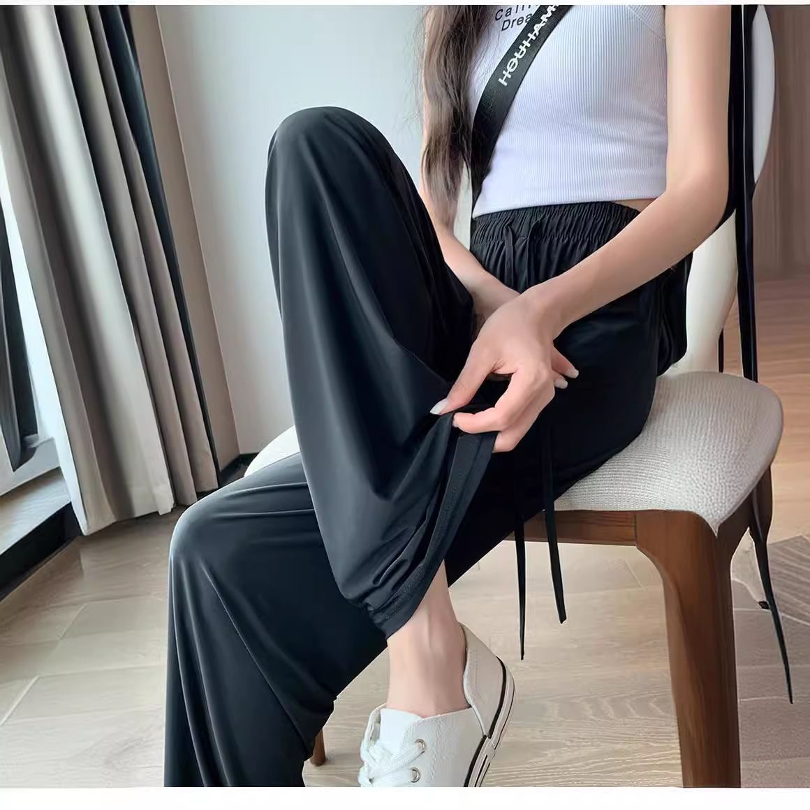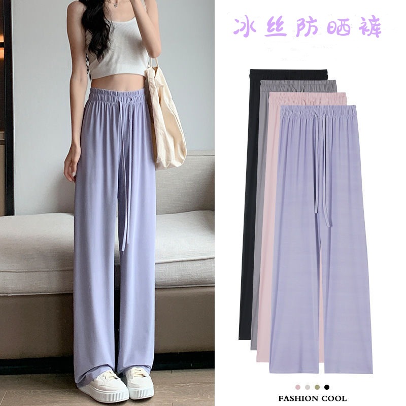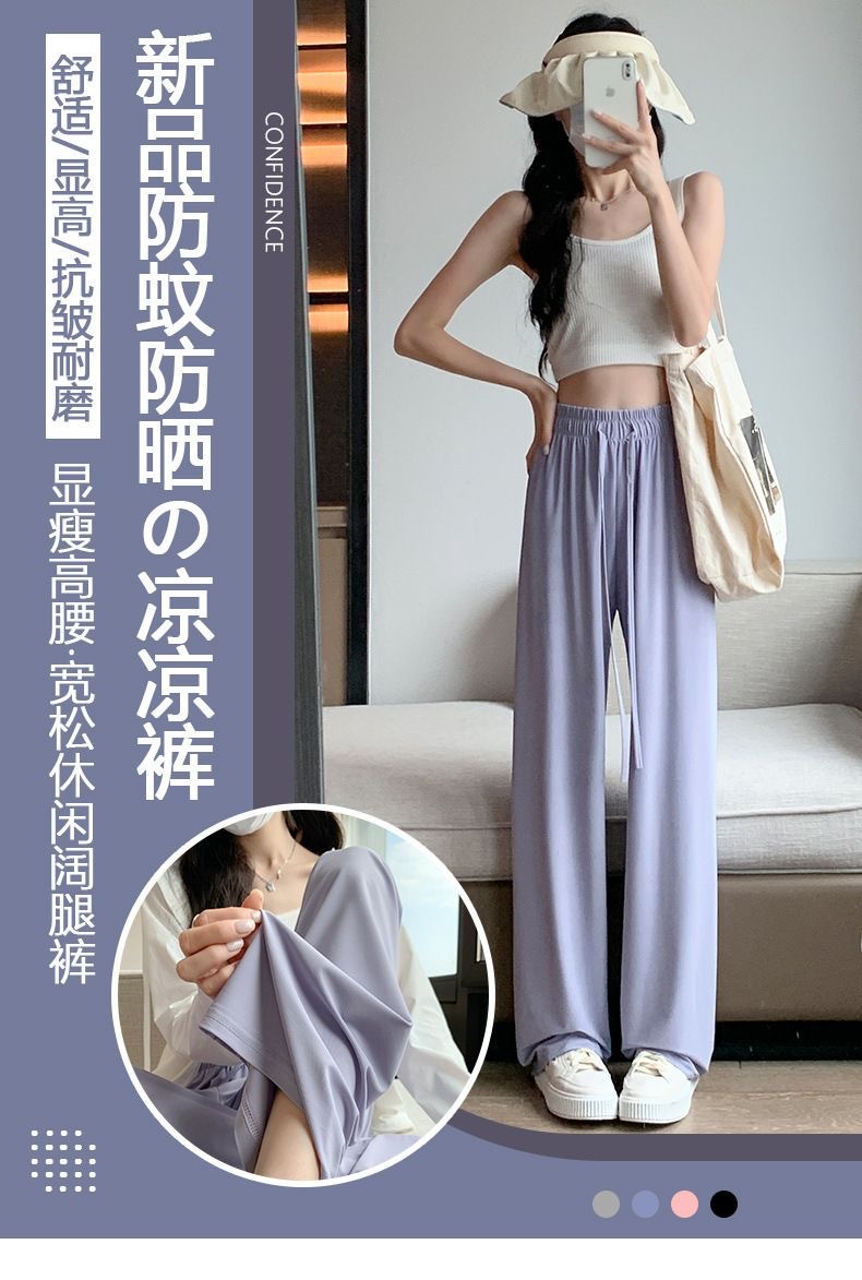 【第2件半价!超薄凉感冰丝防晒裤】宽松垂感,高腰视觉拉伸腿长,显高显瘦!防蚊女凉凉直筒休闲阔腿裤运动裤,搭防晒雨伞防晒衣帽超舒适