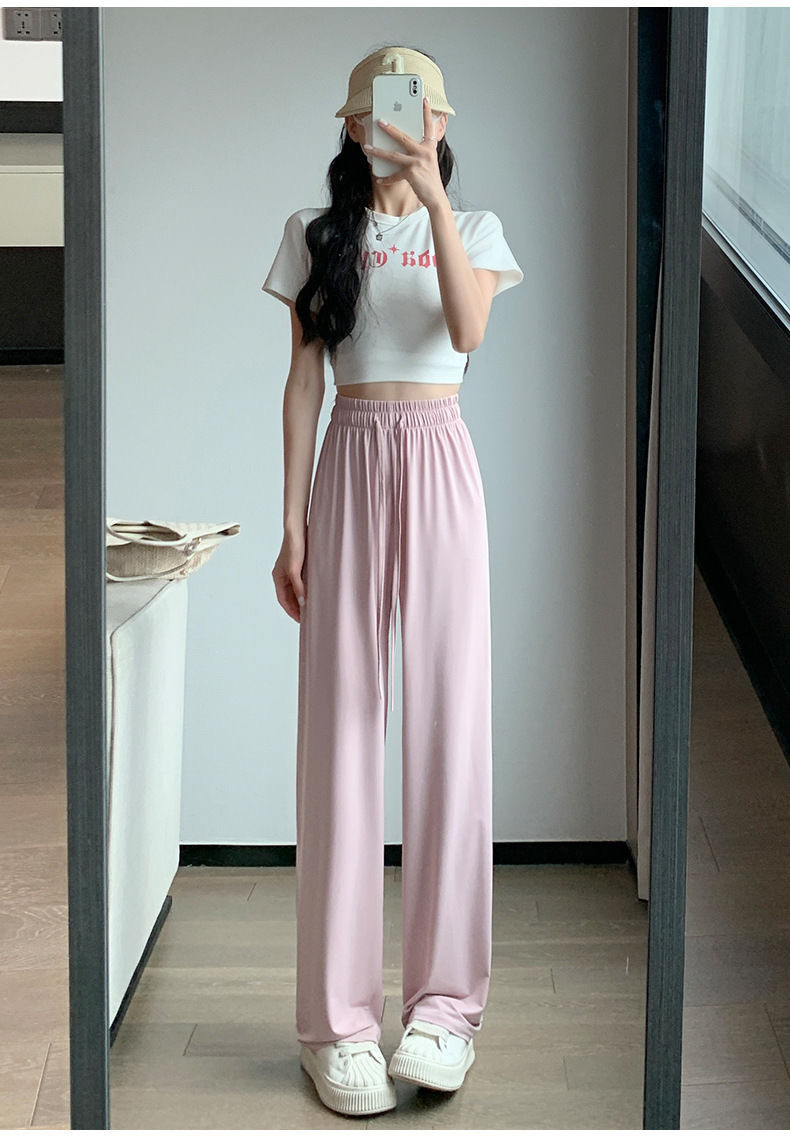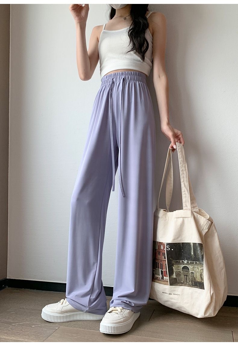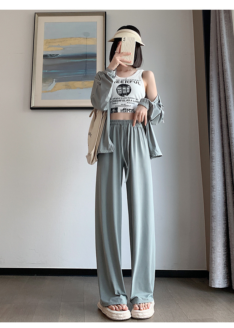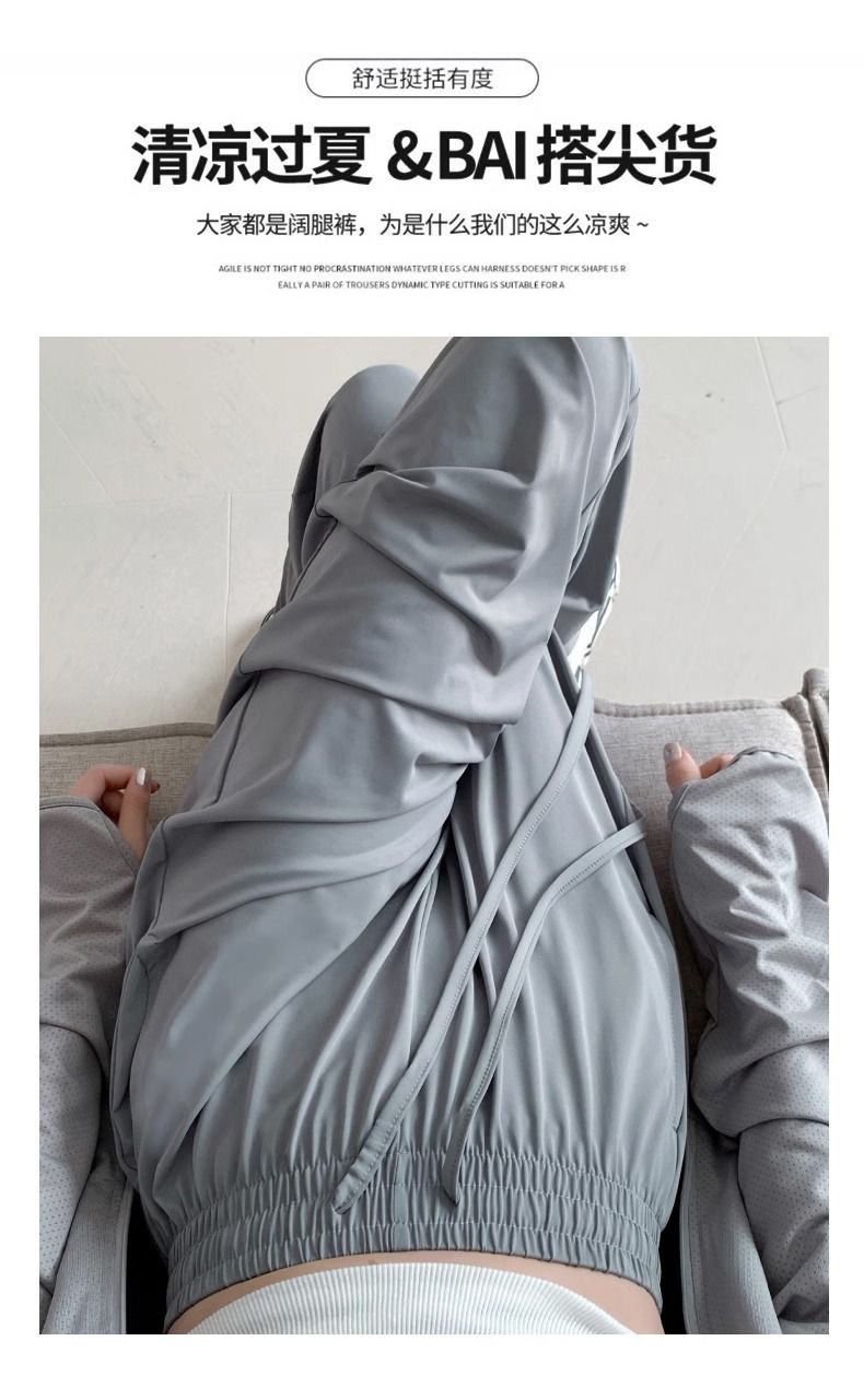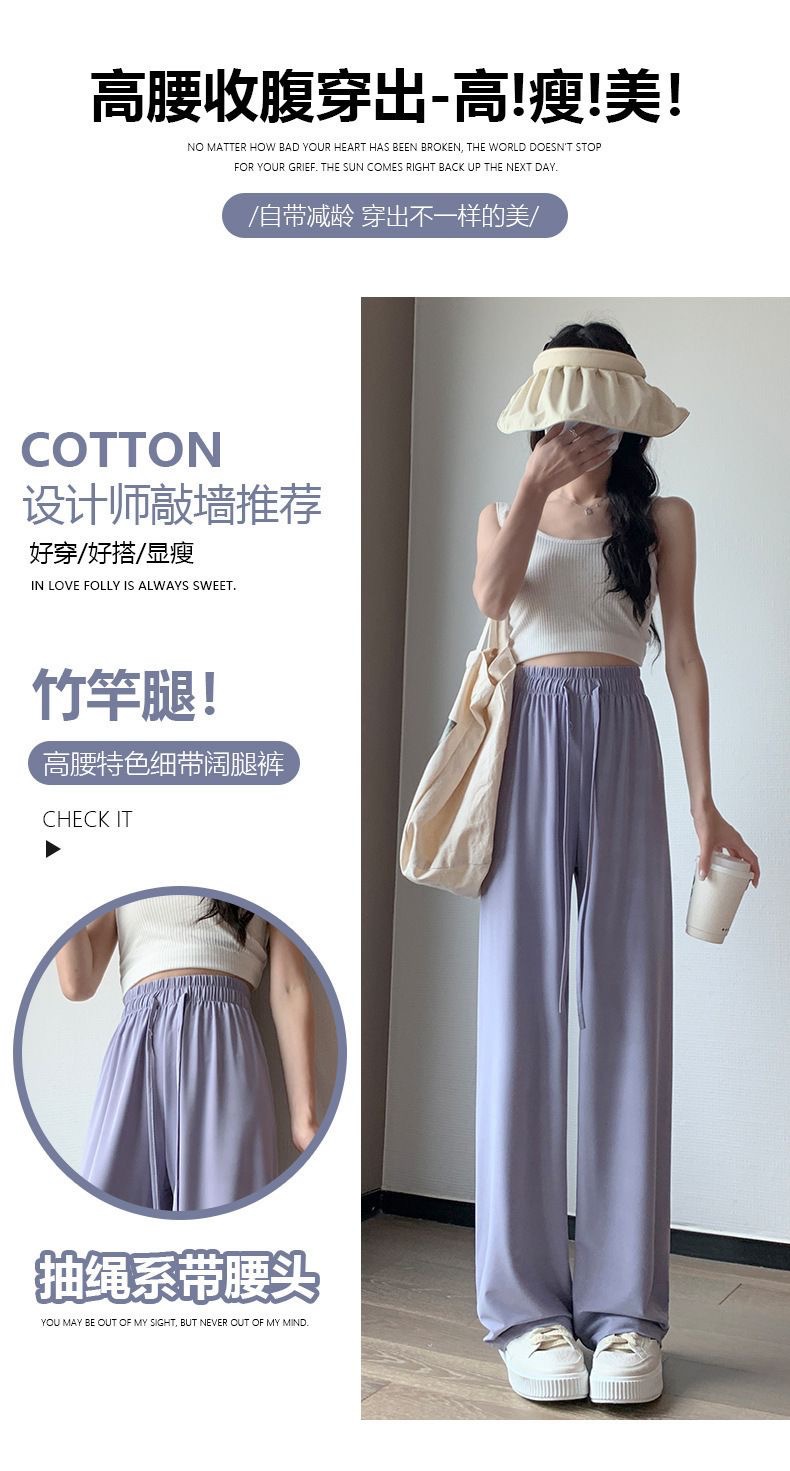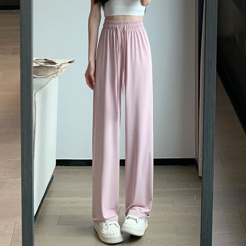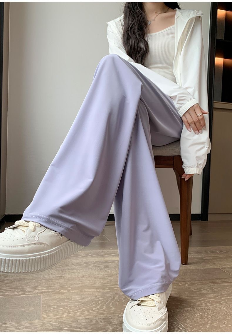 【第2件半价!超薄凉感冰丝防晒裤】宽松垂感,高腰视觉拉伸腿长,显高显瘦!防蚊女凉凉直筒休闲阔腿裤运动裤,搭防晒雨伞防晒衣帽超舒适