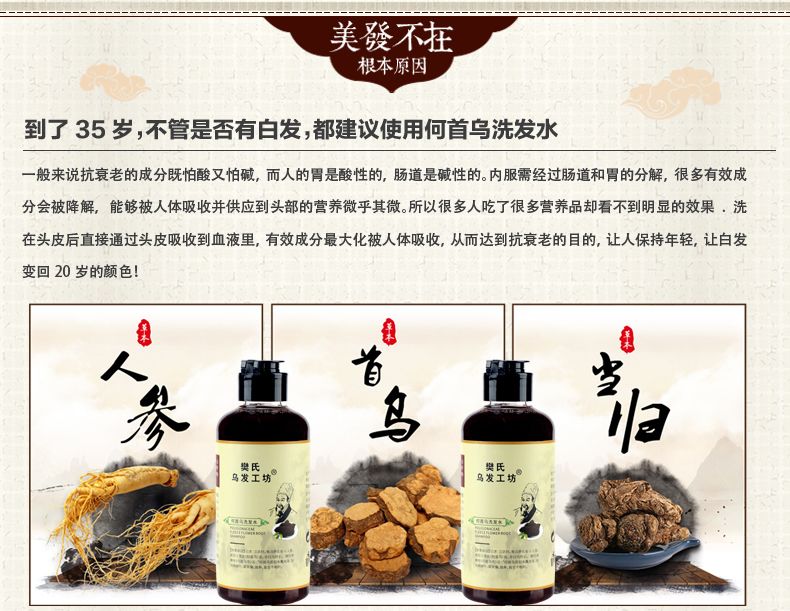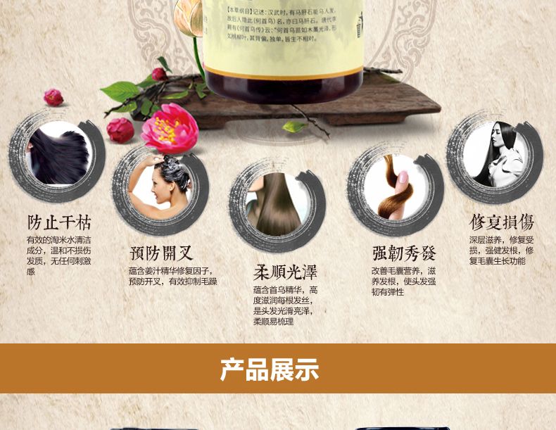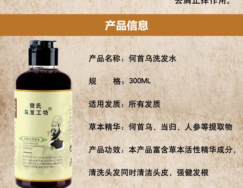 何首乌洗发水黑发养发液强健发根防脱育发 头发健康成长