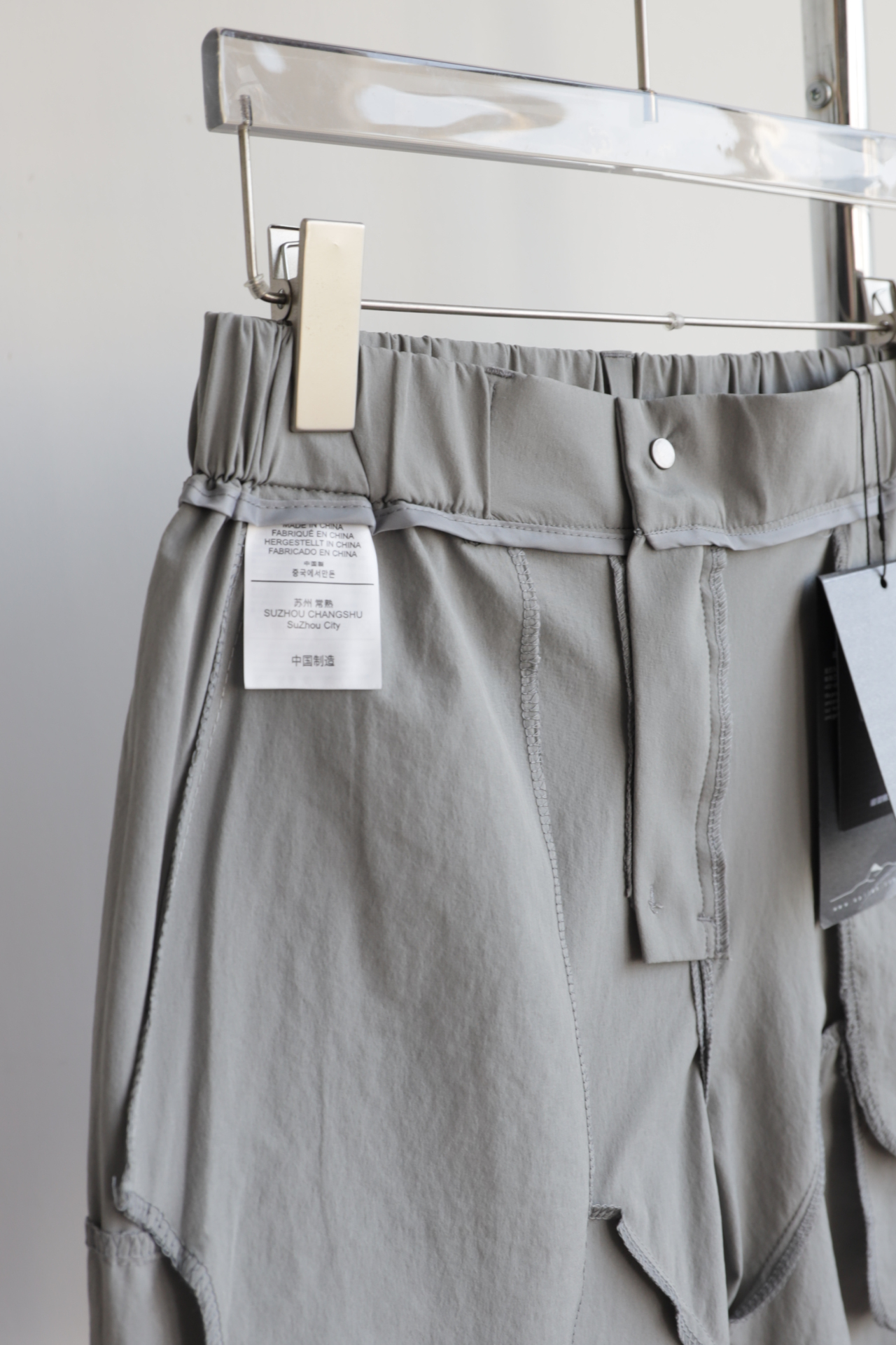 腰部弹力松紧,也可系腰带,臀部加宽剪裁