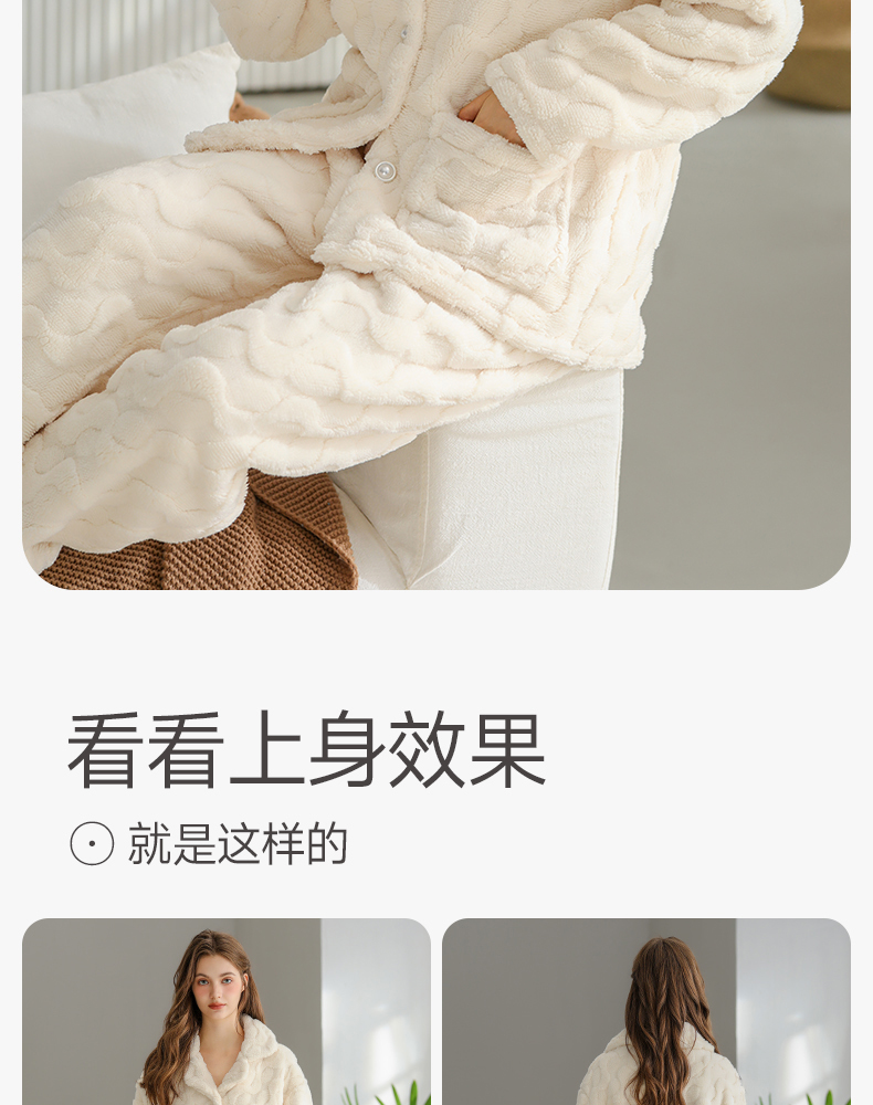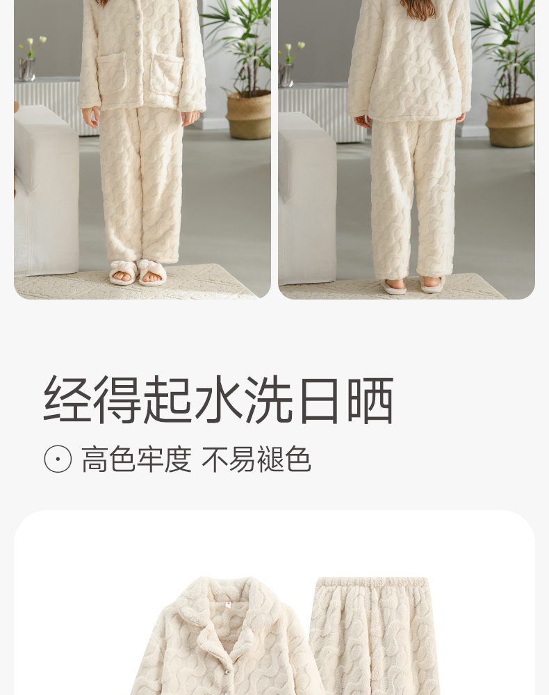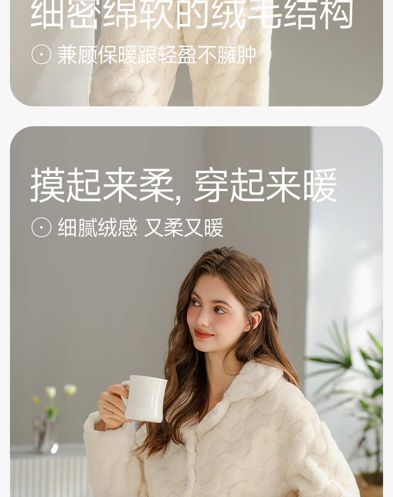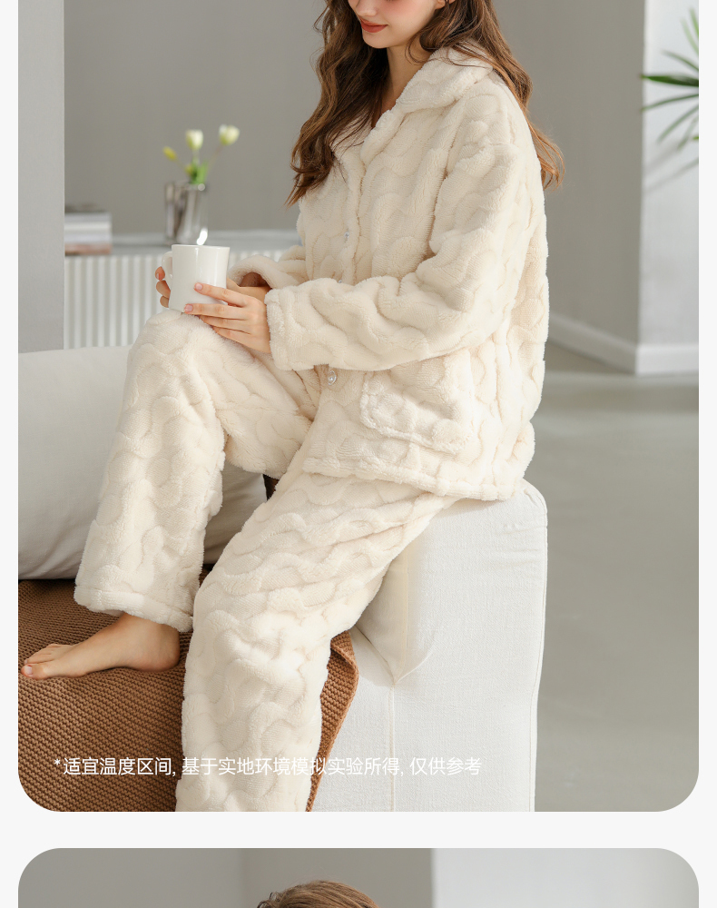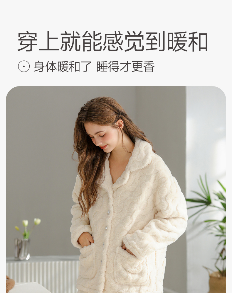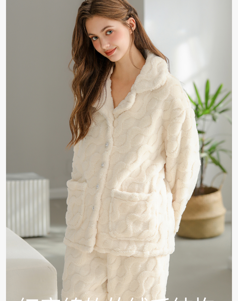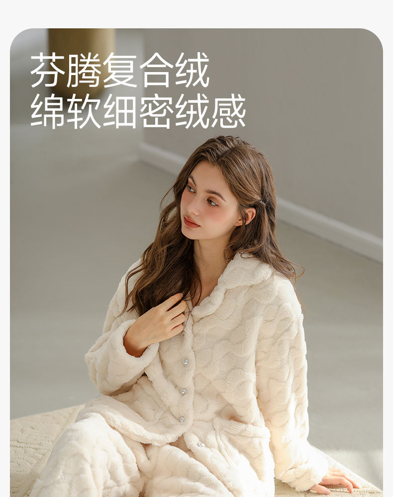 <有书独家>芬腾珊瑚绒女士睡衣秋冬加绒加厚新款保暖宽松休闲大码家居服套装