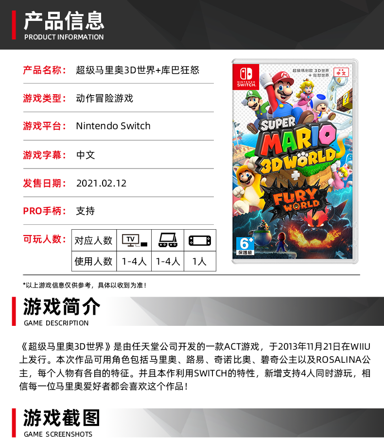 【畅玩卡可租】二手Switch游戏 超级马里奥3D世界+狂怒世界 中文版
