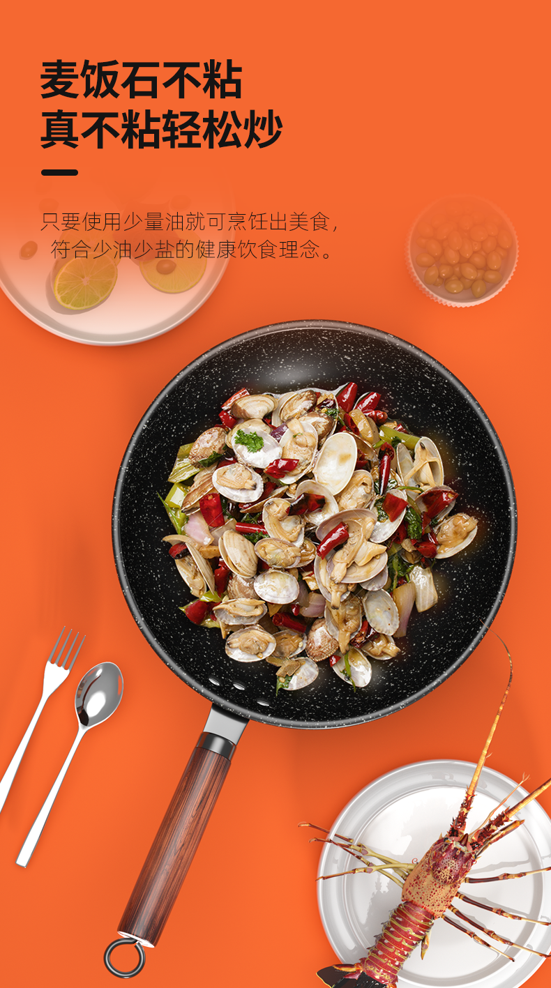 智贤JSYO味赏炒锅麦饭石不粘锅平底家用煎炒锅电磁炉煤气灶通用锅具