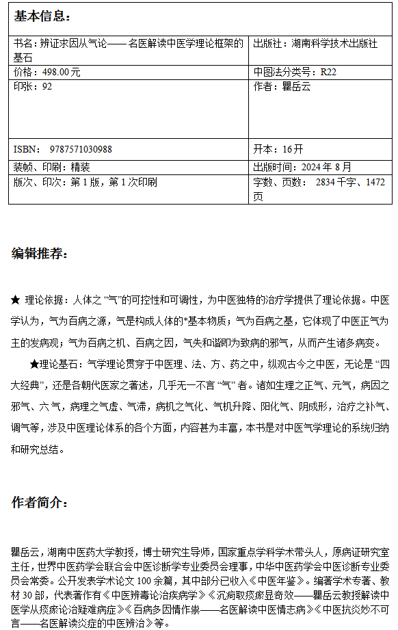 中医从基础走向临床丛书:辨证求因从气论—— 名医解读中医学理论框架的基石 瞿岳云