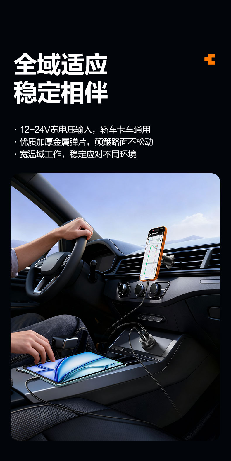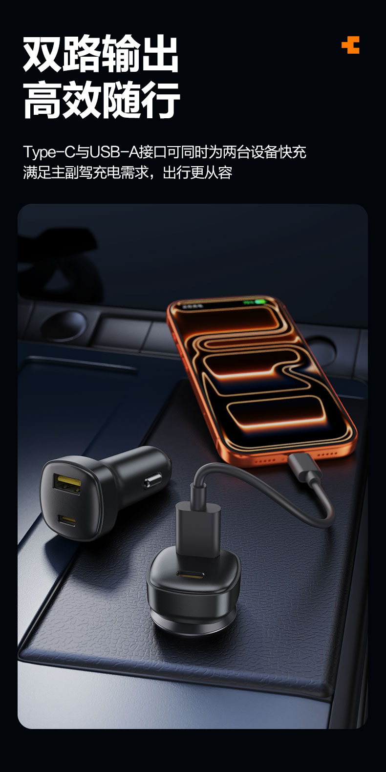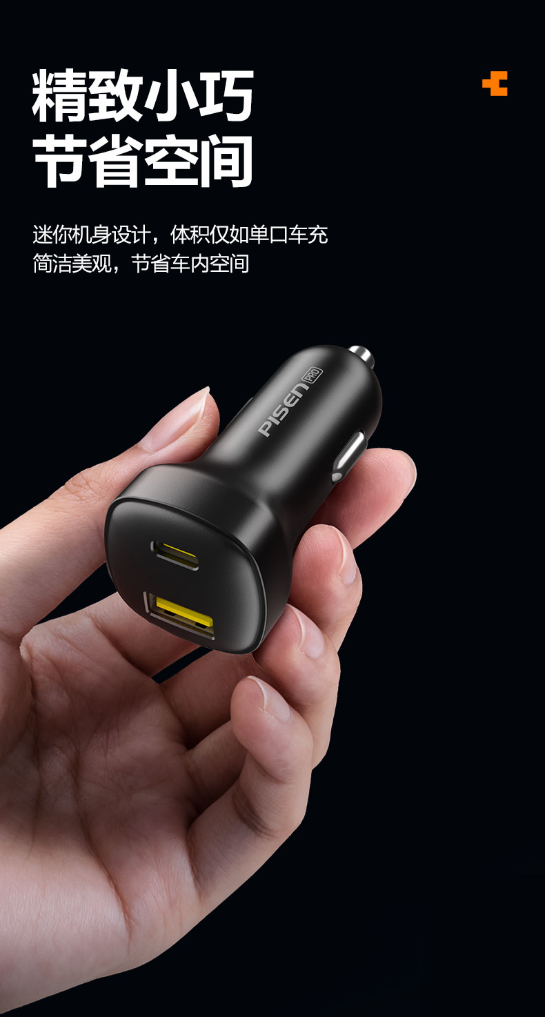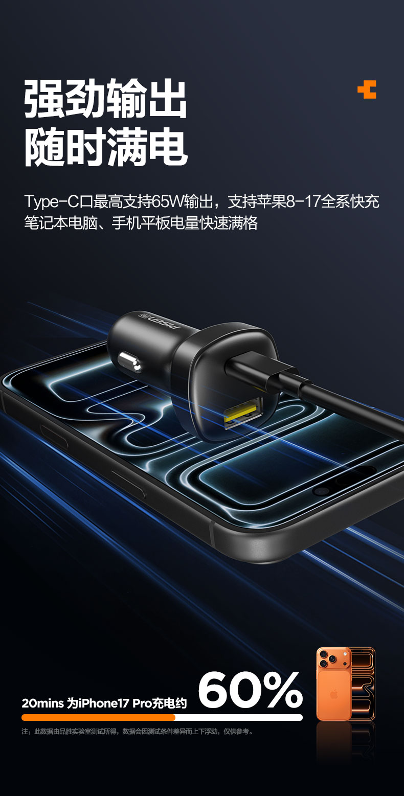 品胜 65W车载充电器UFCS融合快充1A1C 点烟器一拖二 支持快充/转换插头