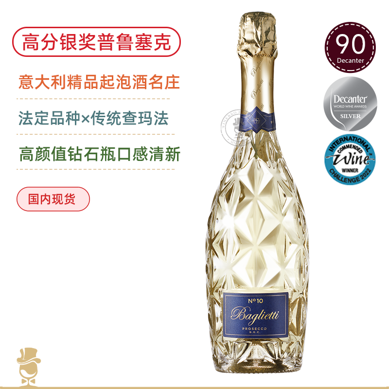 意大利的“香槟”!高分银奖力荐!百格丽10号普罗塞克起泡酒Baglietti No. 10 Extra Dry Prosecco DOC【高颜值性价比口粮】