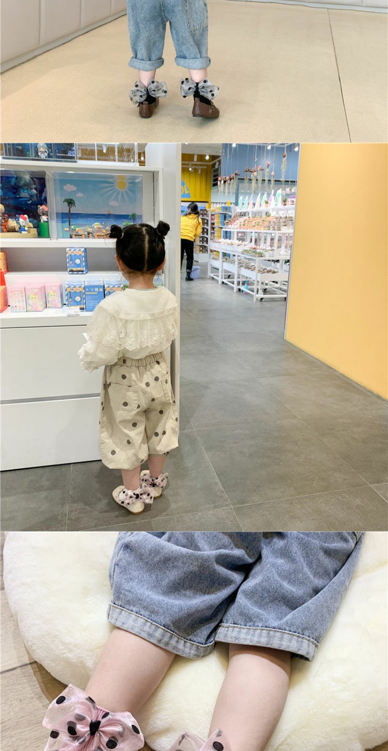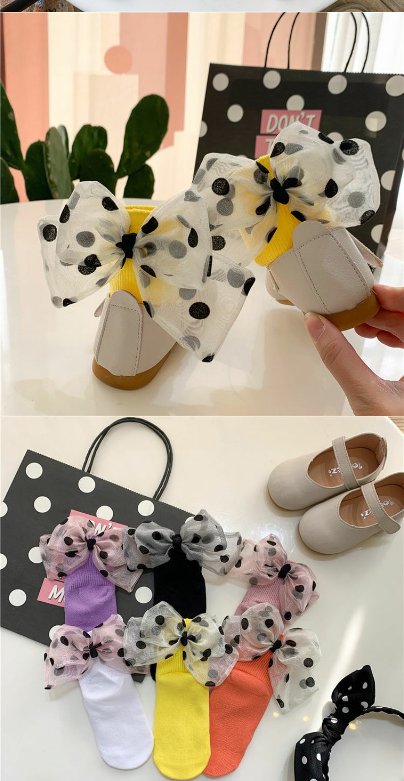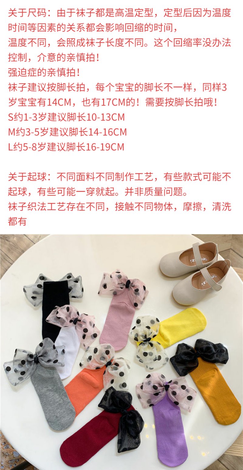 新款春夏季儿童袜子全棉女童波点蝴蝶结淑女薄款短袜公主袜
