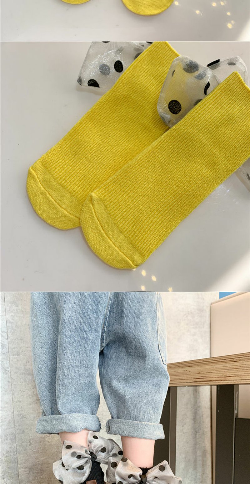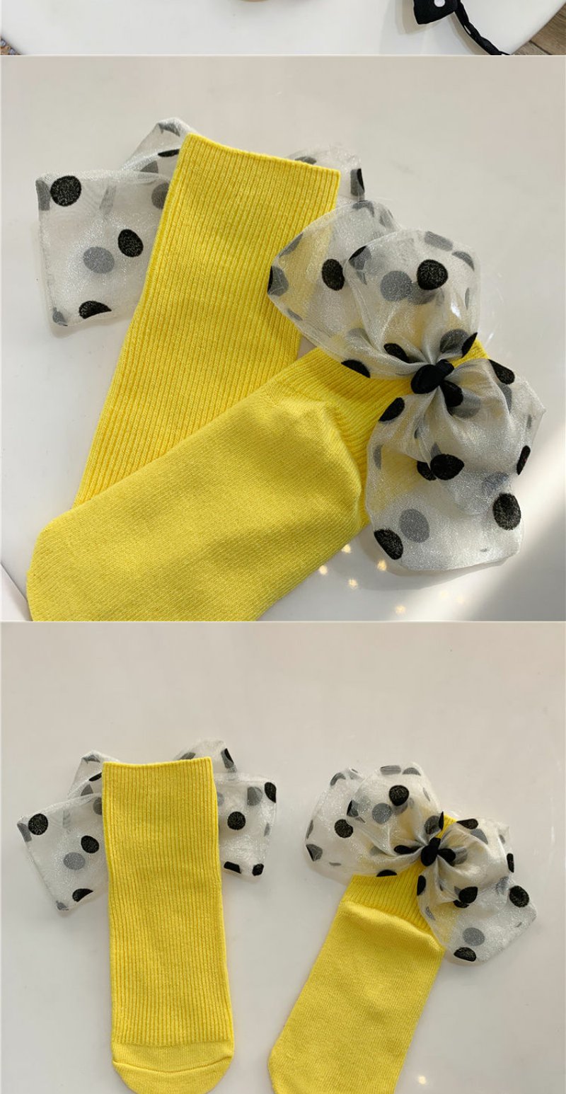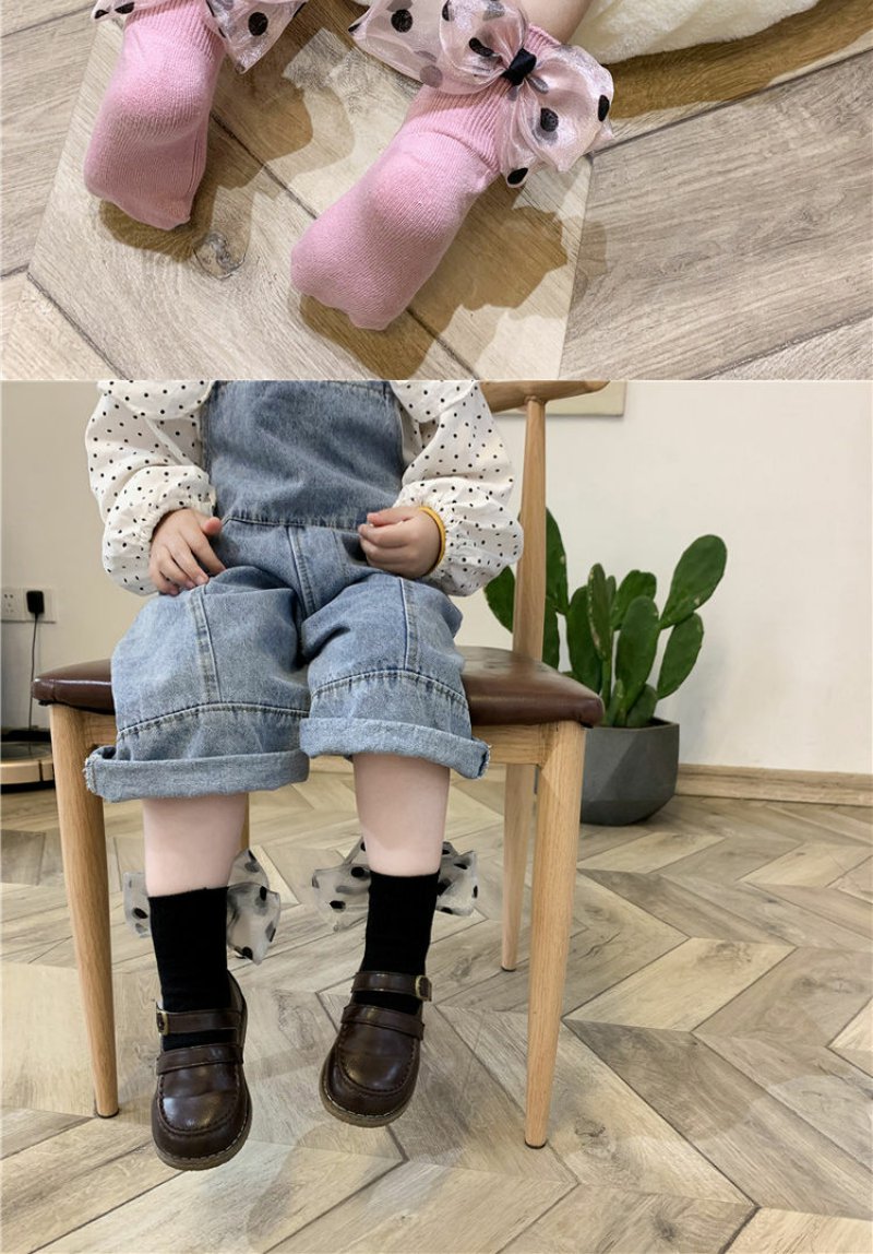 新款春夏季儿童袜子全棉女童波点蝴蝶结淑女薄款短袜公主袜
