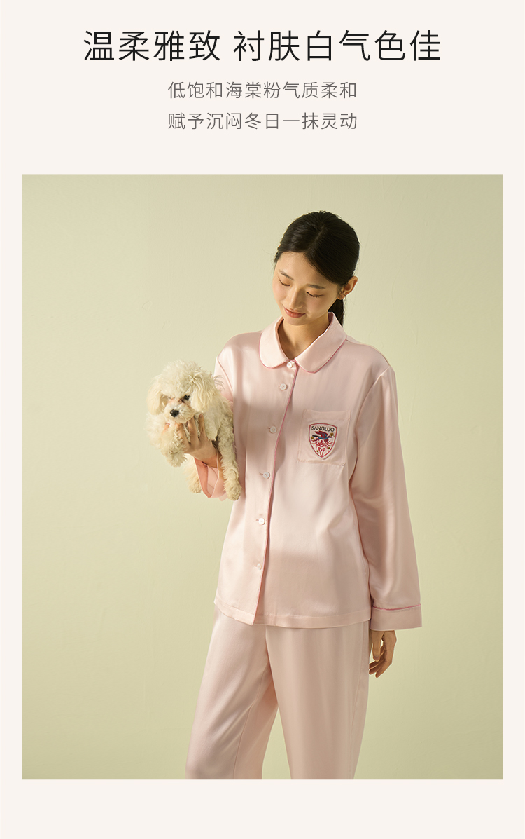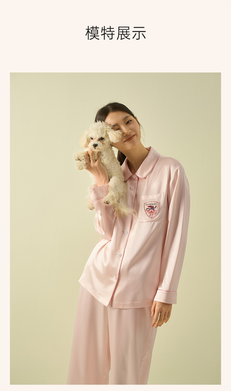 可机洗桑罗23姆米重磅真丝苏绣套装女24年秋冬新品可外穿家居服