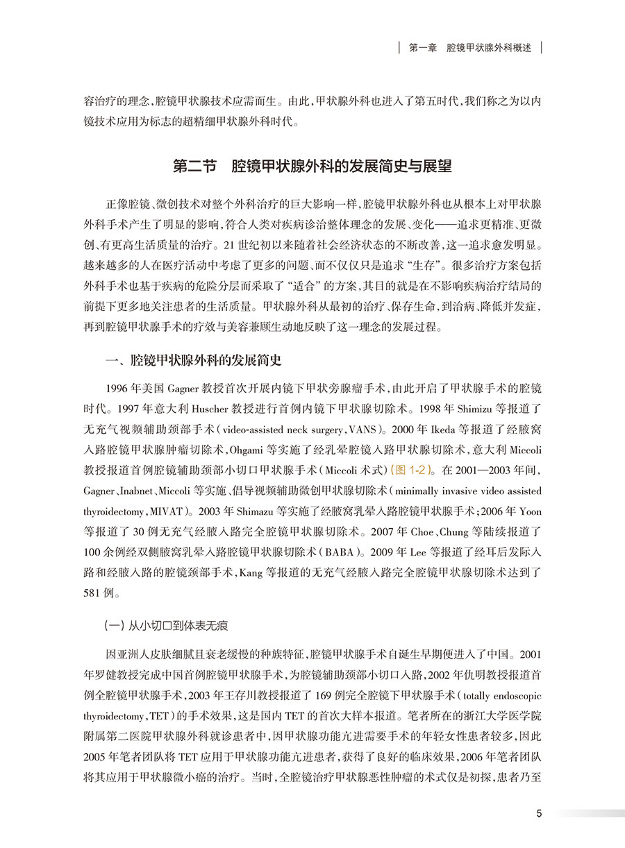 本书预计20万字,535图,30视频。分以下几部分编写:甲状腺癌诊治概述、甲状腺腔镜外科概述、甲状腺局部和内镜相关解剖、甲状腺腔镜手术中机械器械及能量设备应用、颈前入路腔镜辅助小切口甲状腺手术、充气经腋入路手术、无充气经腋入路手术、胸乳入路手术、全乳晕入路单孔腔镜下甲状腺手术、舌下入路手术、充气口腔前庭入路手术、耳后入路手术、腔镜辅助下颈部淋巴结清扫术、甲状腺腔镜手术并发症与应对措施。