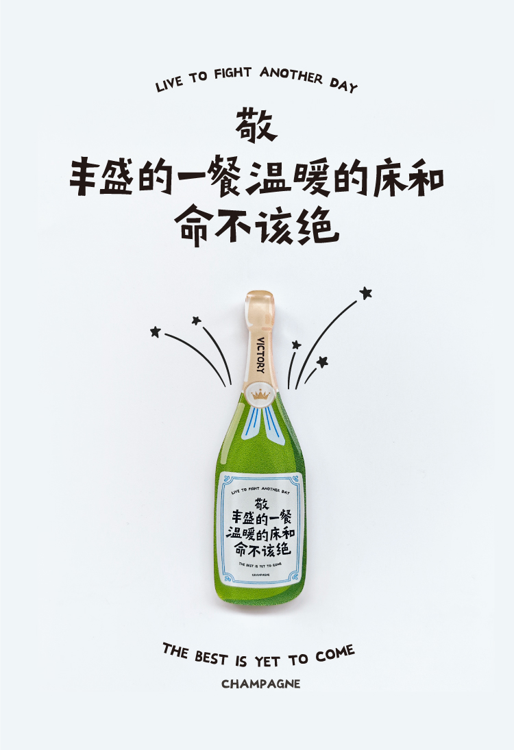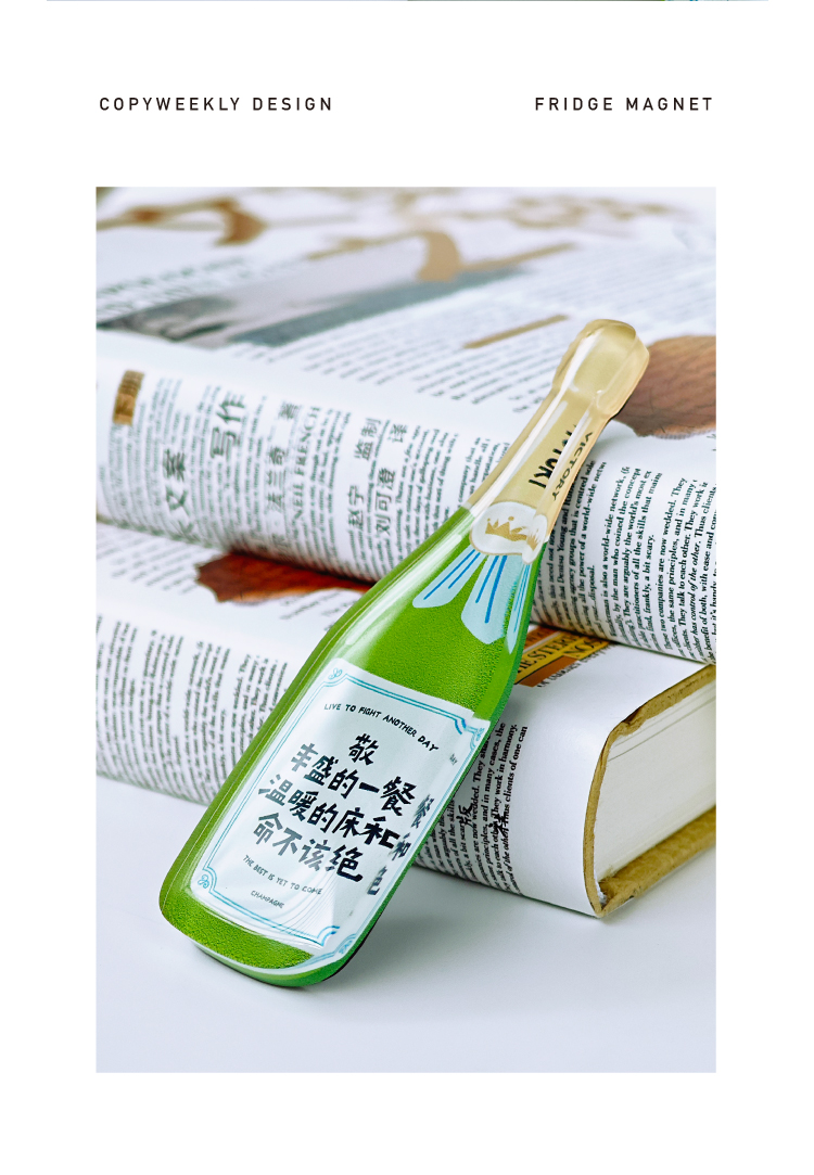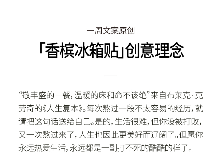 一周文案原创正版 香槟冰箱贴敬丰盛的一餐温暖的床和命不该绝