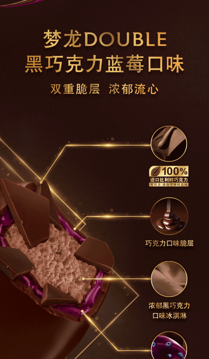 梦龙黑巧克力蓝莓双重流心酱冰激凌72g