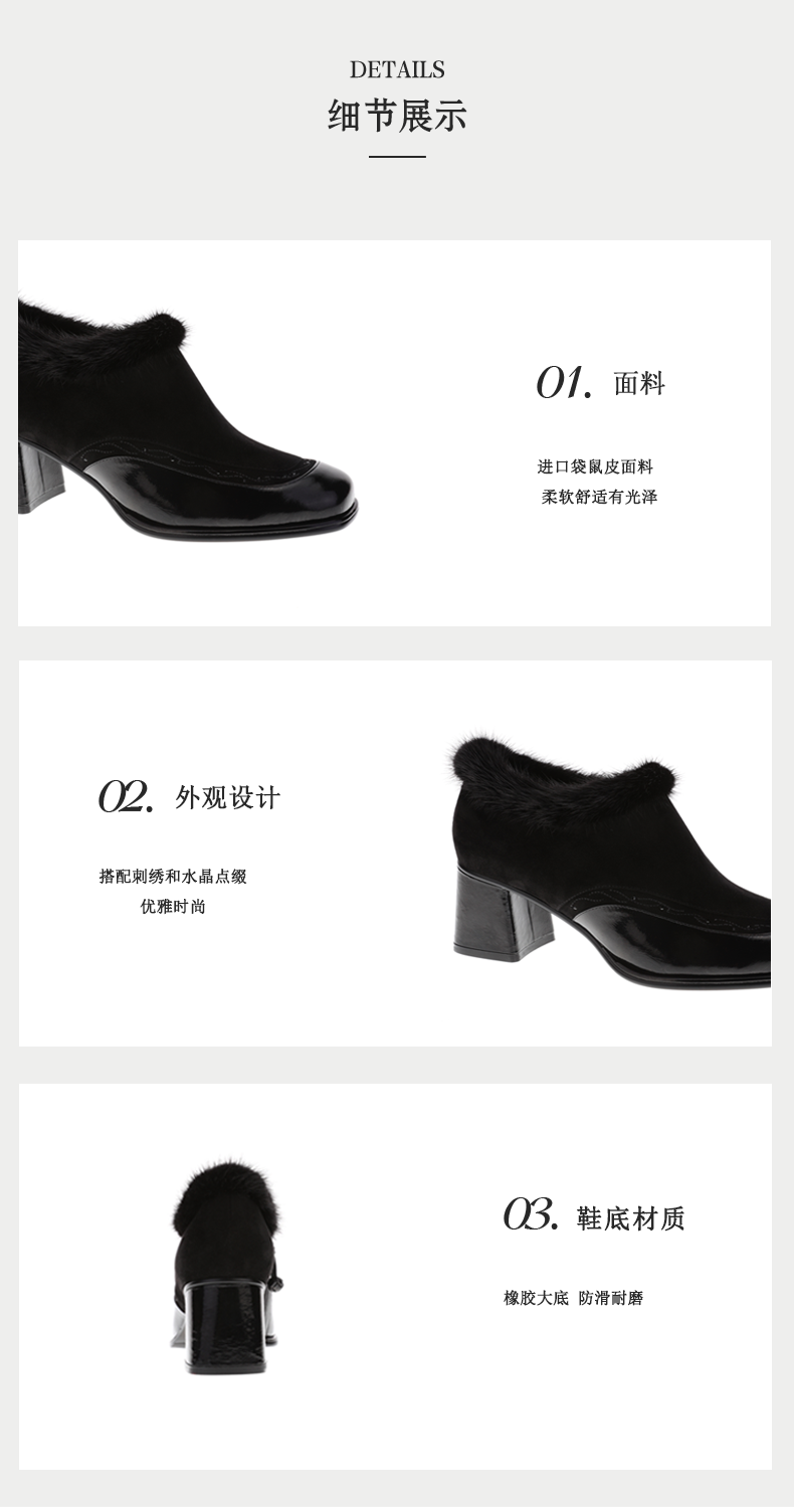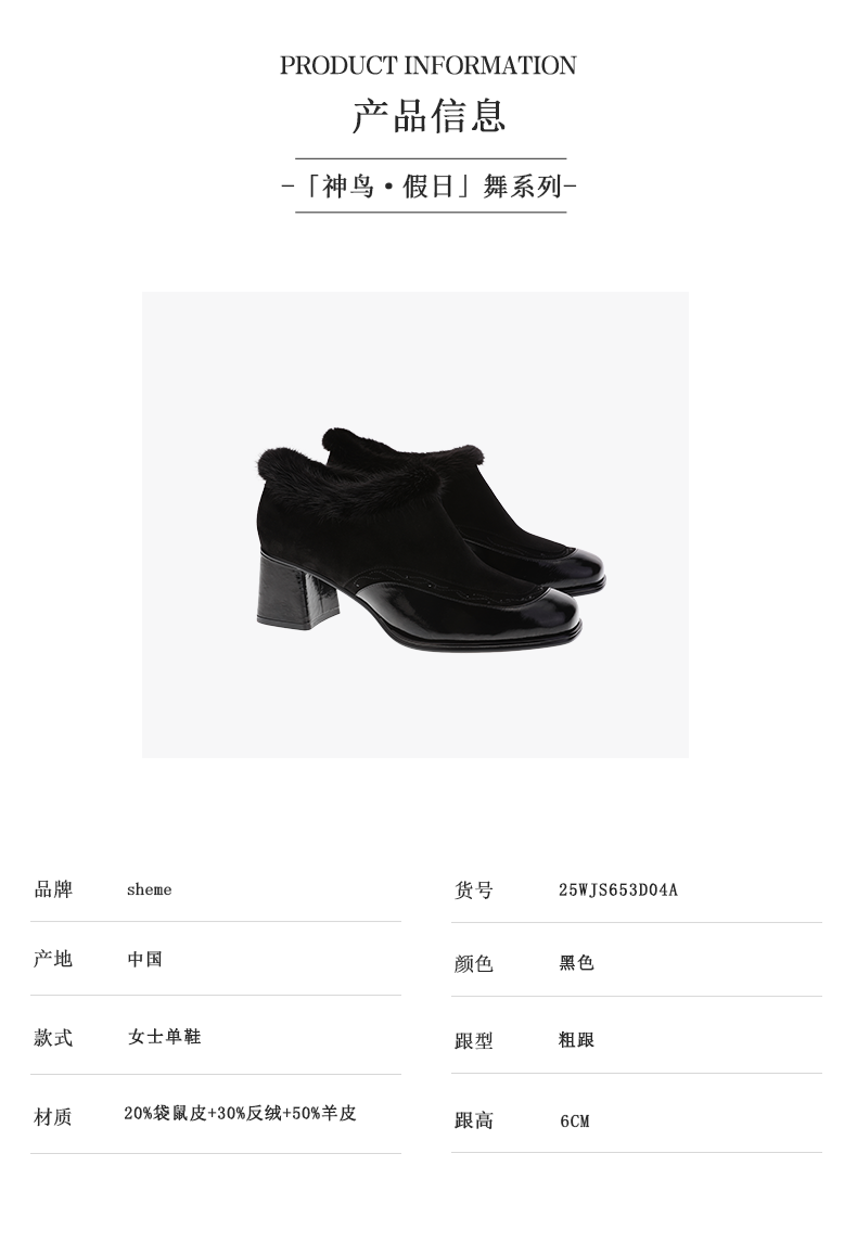 sheme方头高跟乐福鞋水钻装饰女士深口鞋商务经典可定制