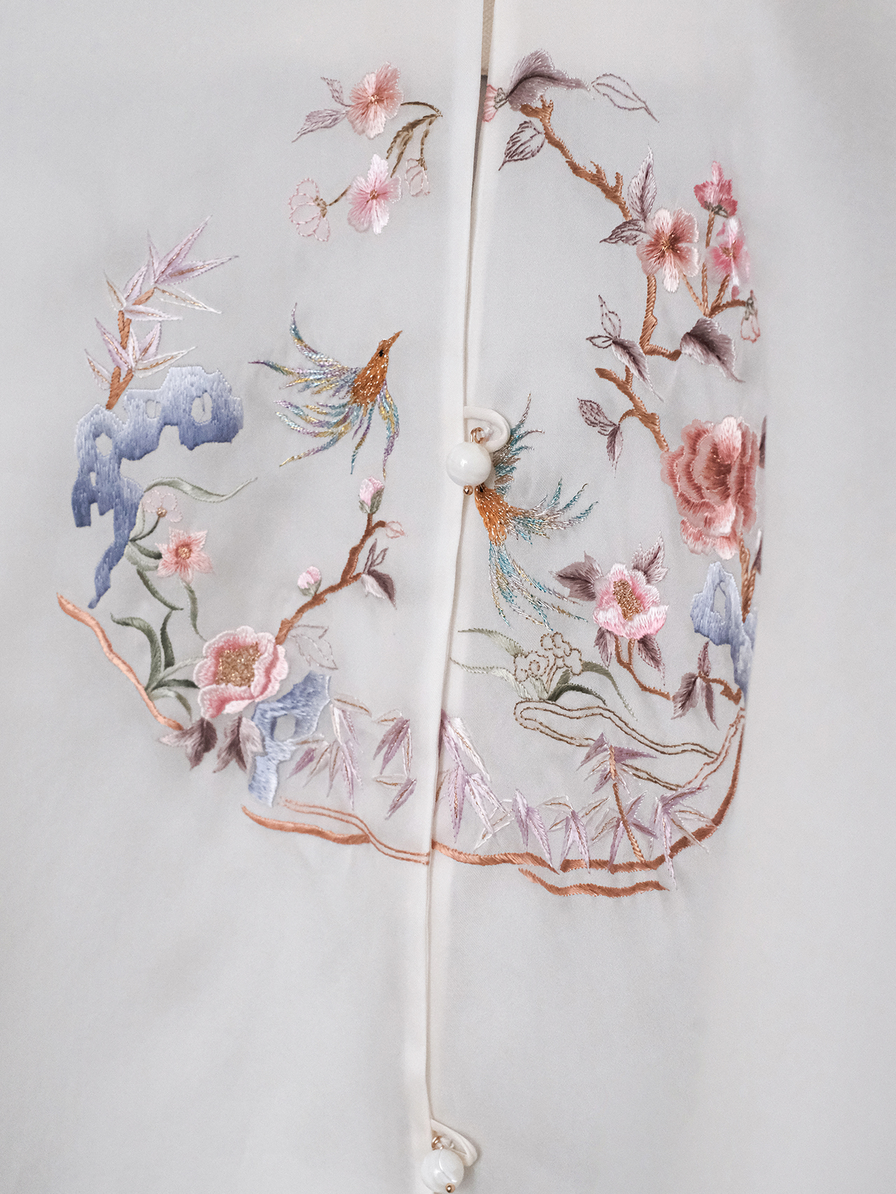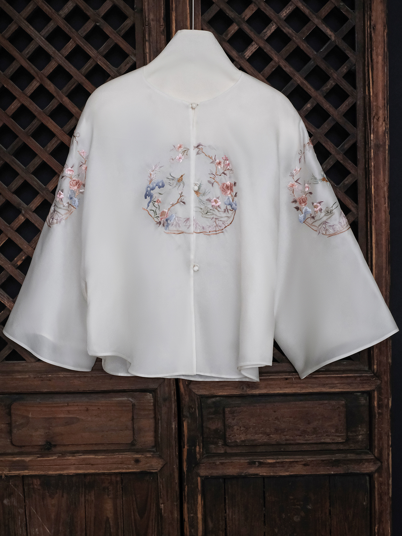 盛唐牡丹大师系列| 喜上眉梢团纹欧根缎手绣外套-白色