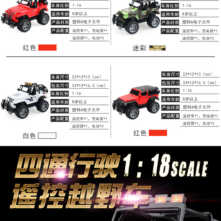 【儿童玩具】*电动玩具儿童四通遥控车 1:18越野车赛车模型玩具可充电玩具