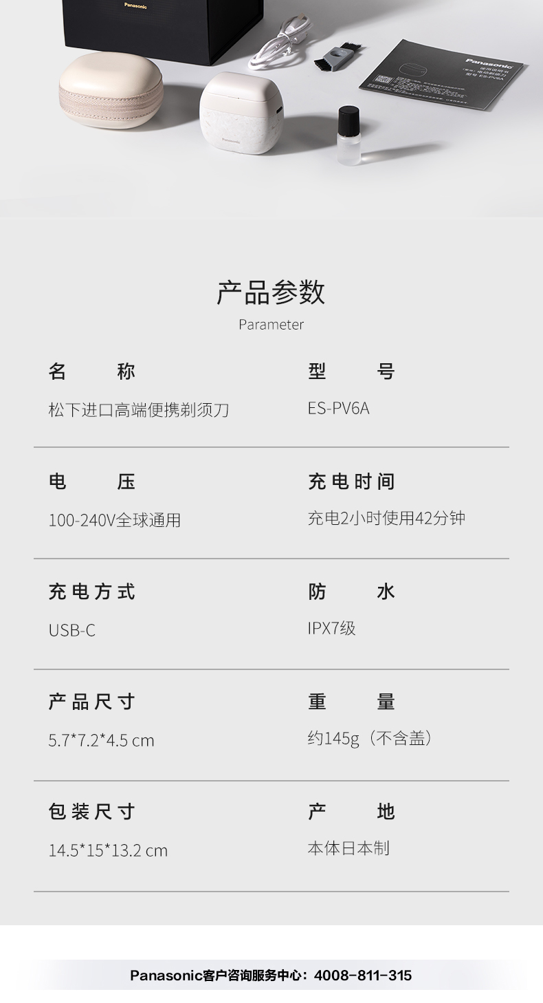 【云粉节】10楼 松下(Panasonic)剃须刀掌IN电动剃须刀往复式进口五刀头Type-c刮胡刀便携剃须刀PV6A 吊牌价2699元 活动价2399元