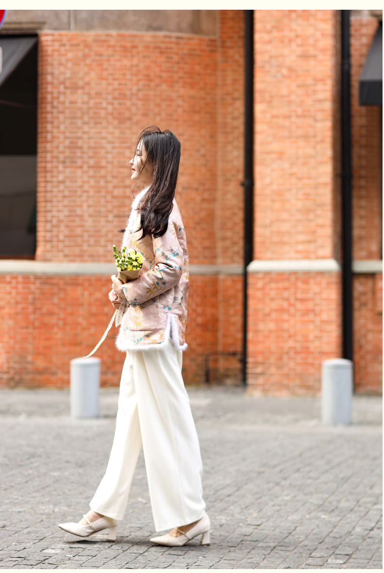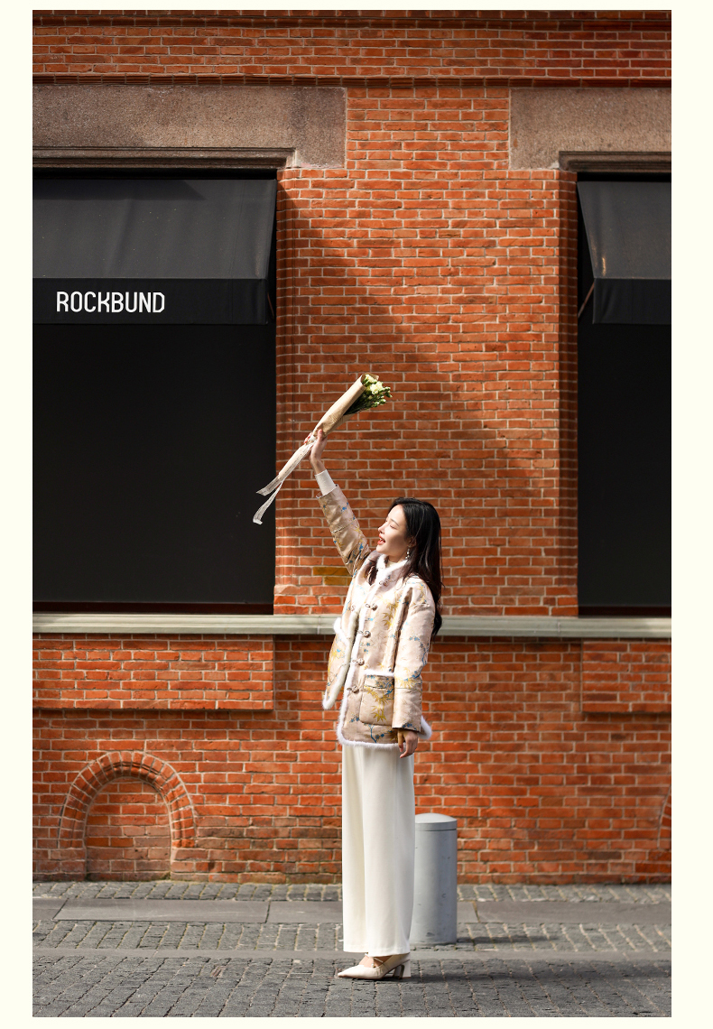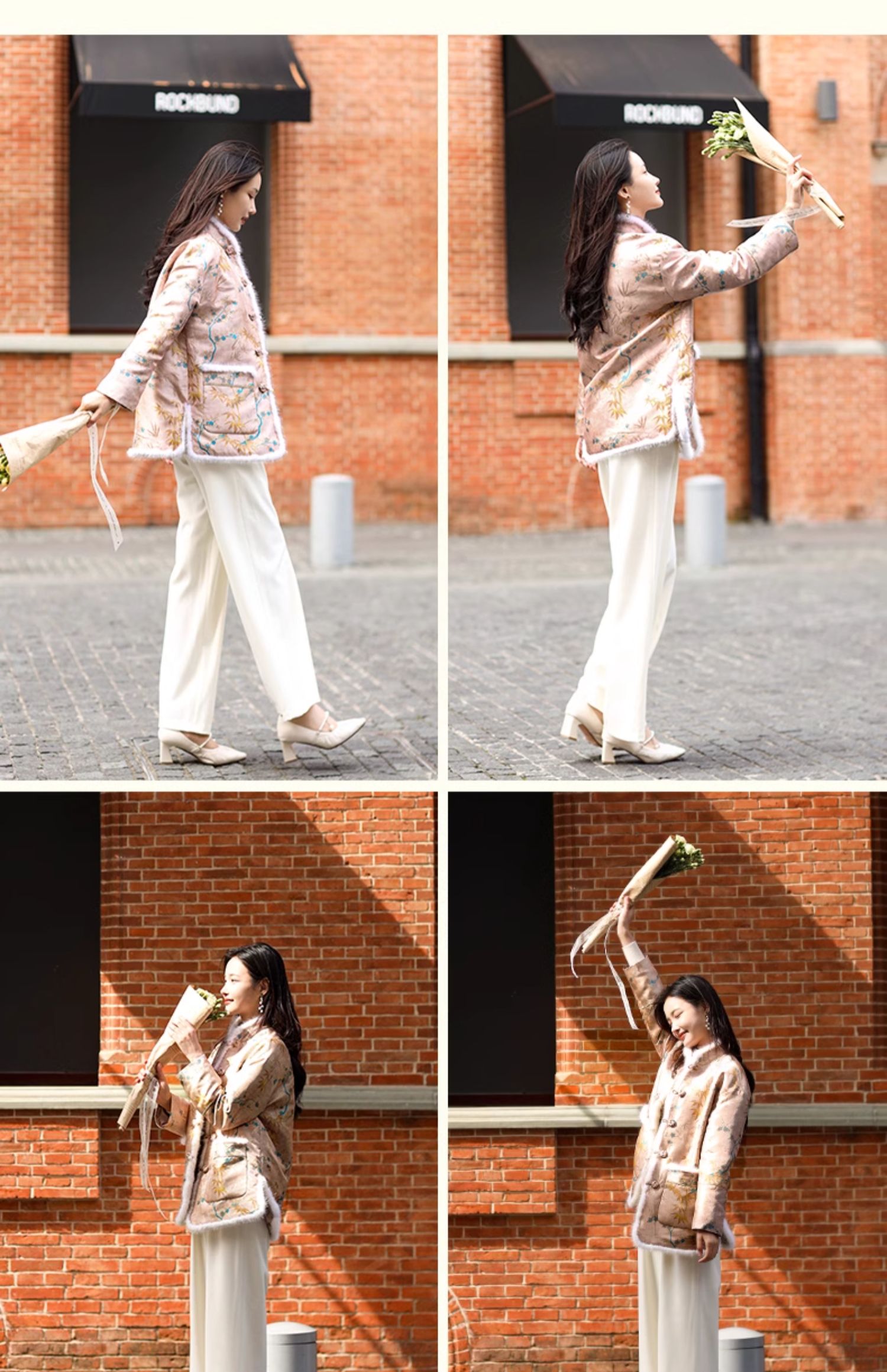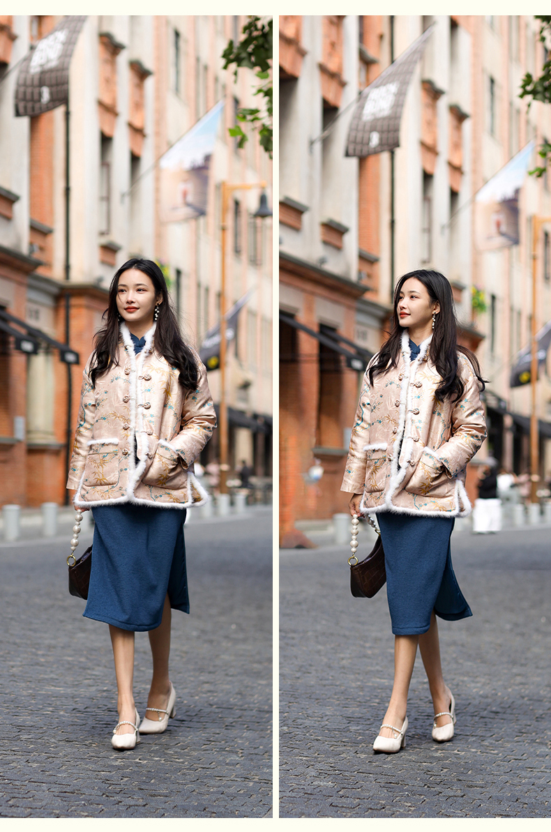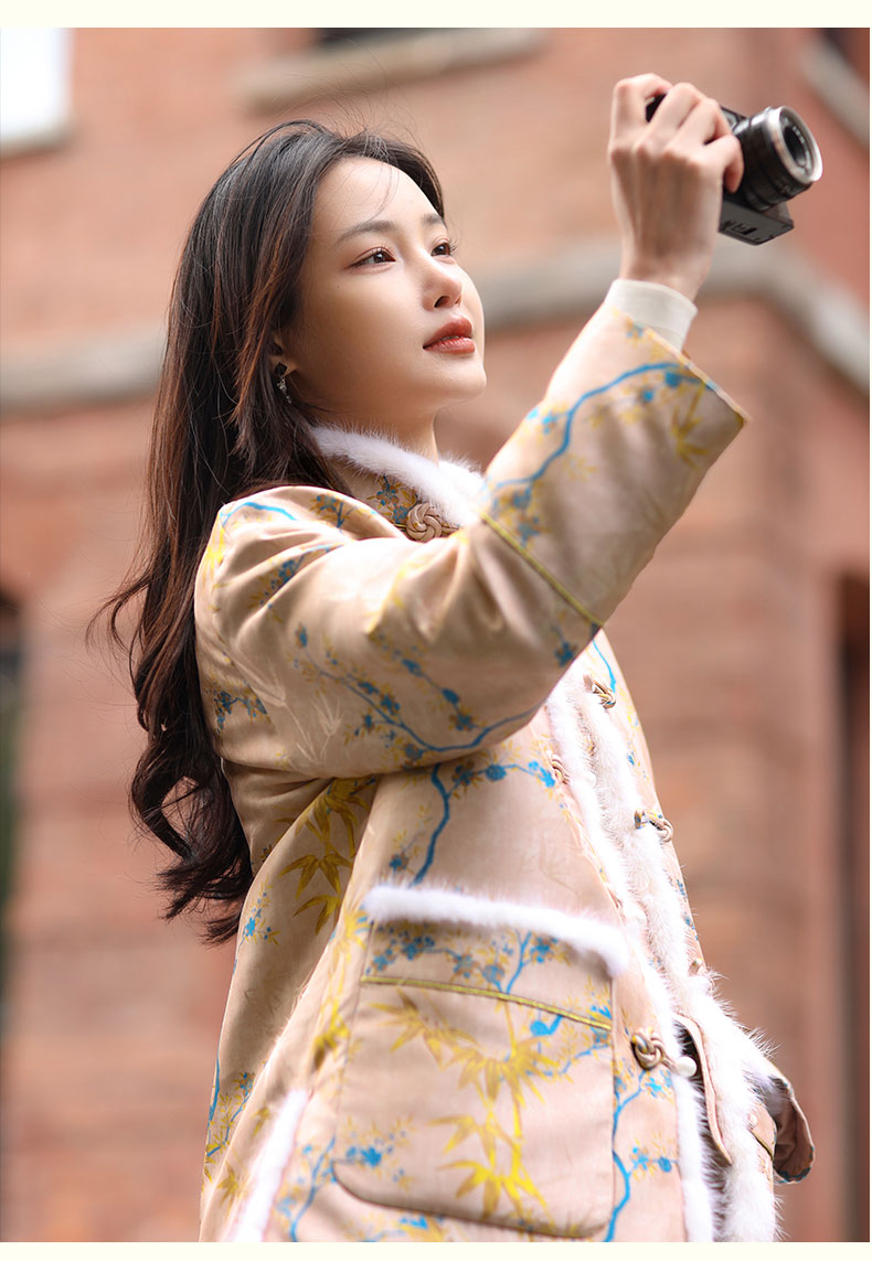 上海逸红颜疏萦2025年秋冬新款水貂毛边织锦棉衣棉服女新中式外套