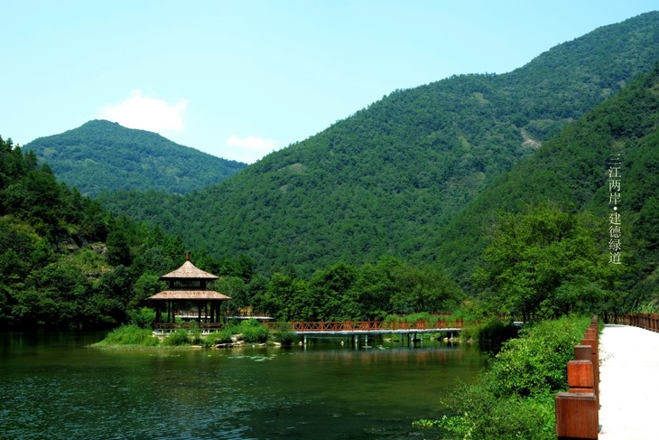 建德绿道东起乾潭镇,西至梅城严东关。沿胥溪与富春江江岸设计,全程约18公里。沿途设溪西畈、子胥渡、富家坞、乌石滩、姚坞、严东关等驿站,并设有电瓶车、自行车服务站等配套设施。该绿道地处建德七里扬帆景区核心区域,空气清新、环境优美、植被茂密,被誉为“浙江最美绿道”。散步、慢跑、骑行,闲散的心情、健康的活力、远足的豪情都将在这里完美交融。