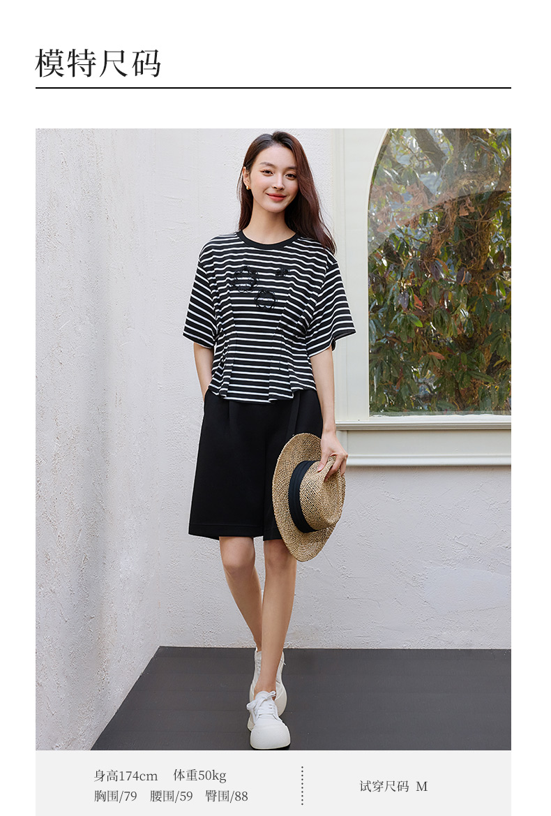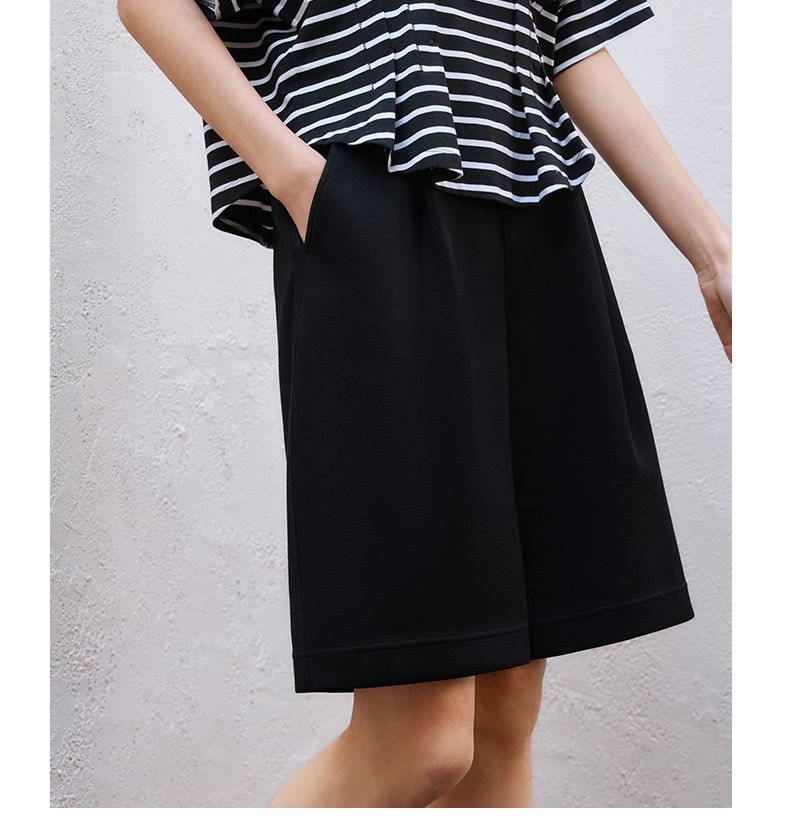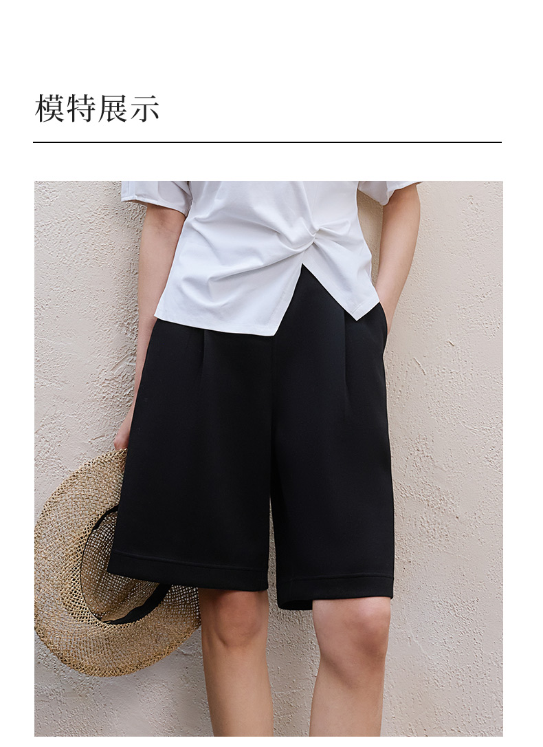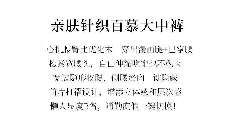 玳莎针织百慕大中裤女2025年夏季新款通勤时尚百搭直筒显瘦A字裤 FB36201