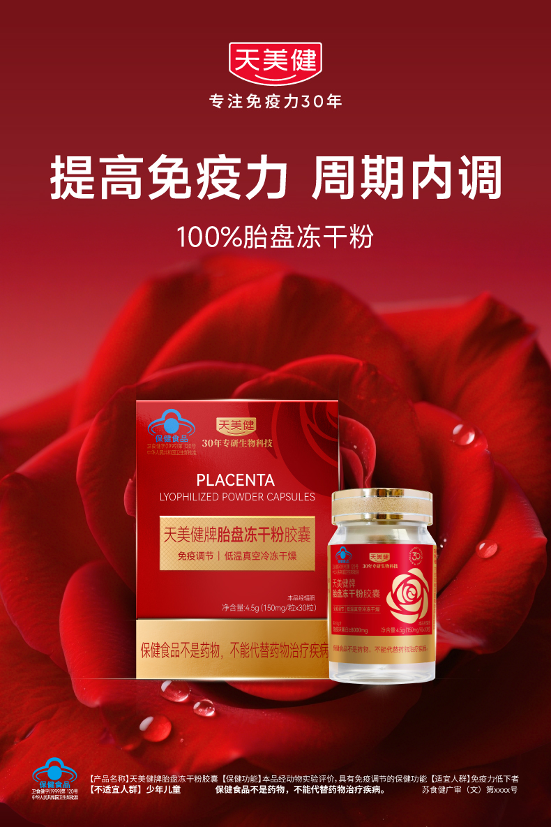 天美健胎盘冻干粉胶囊150mg*30粒/盒 免疫调节