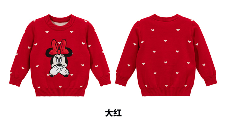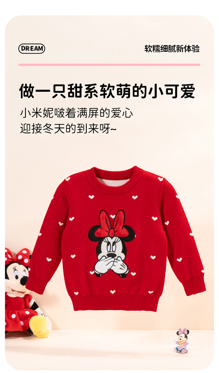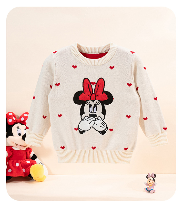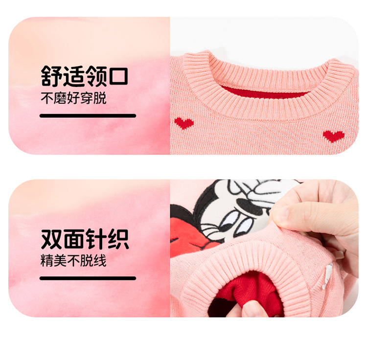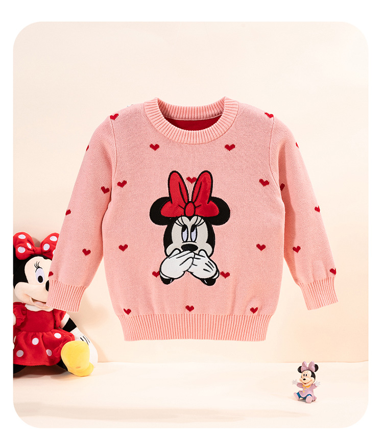 迪士尼童装女童毛衣小米妮圆领套头毛衣纯棉针织套头上衣ZD3DS028
