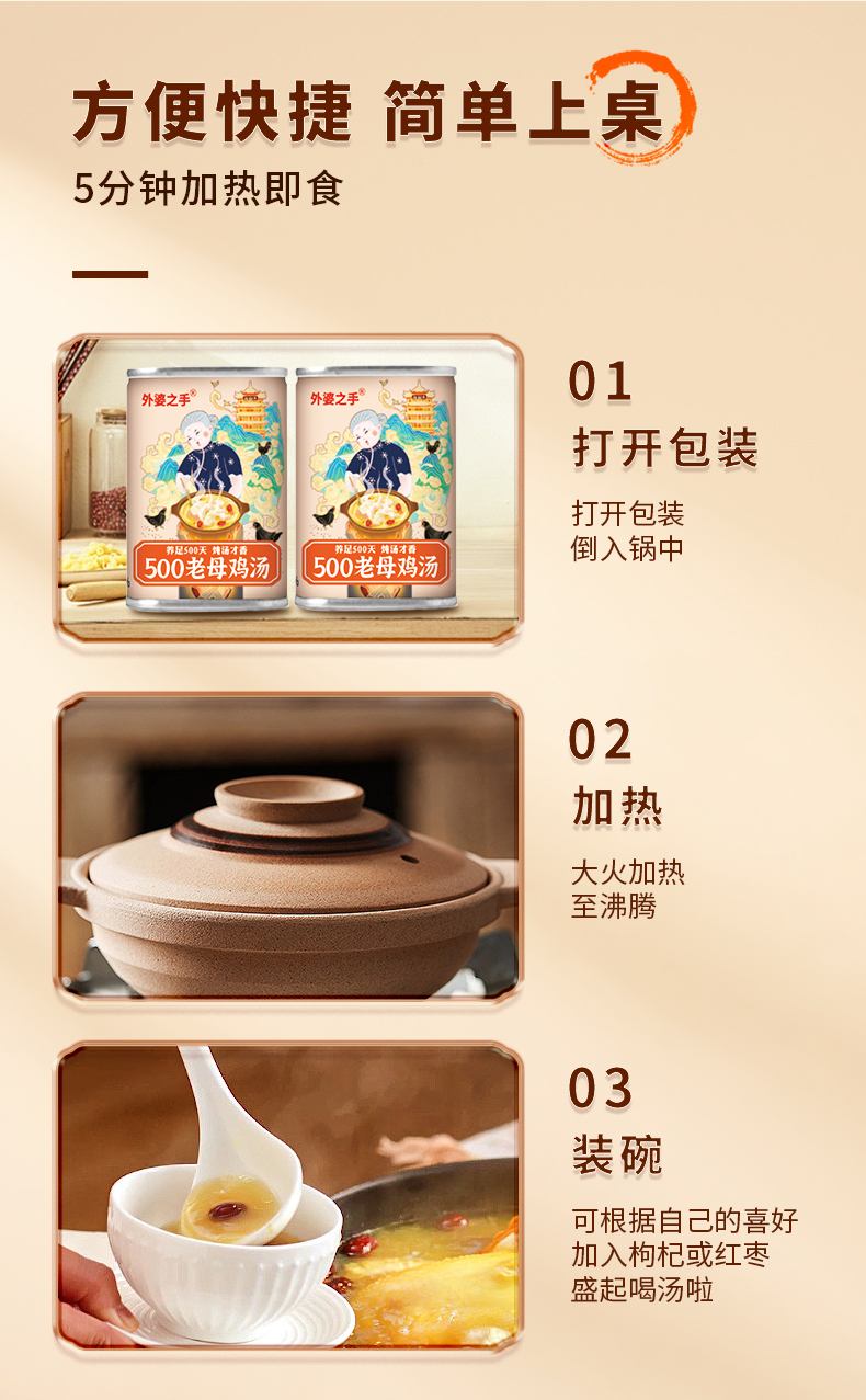 优选|神丹500天老母鸡汤 慢养500天  鲜香味美  400g/罐*4罐(礼盒装) 商品图3