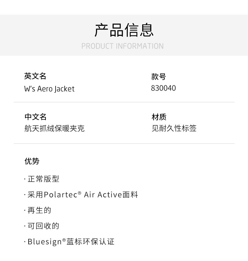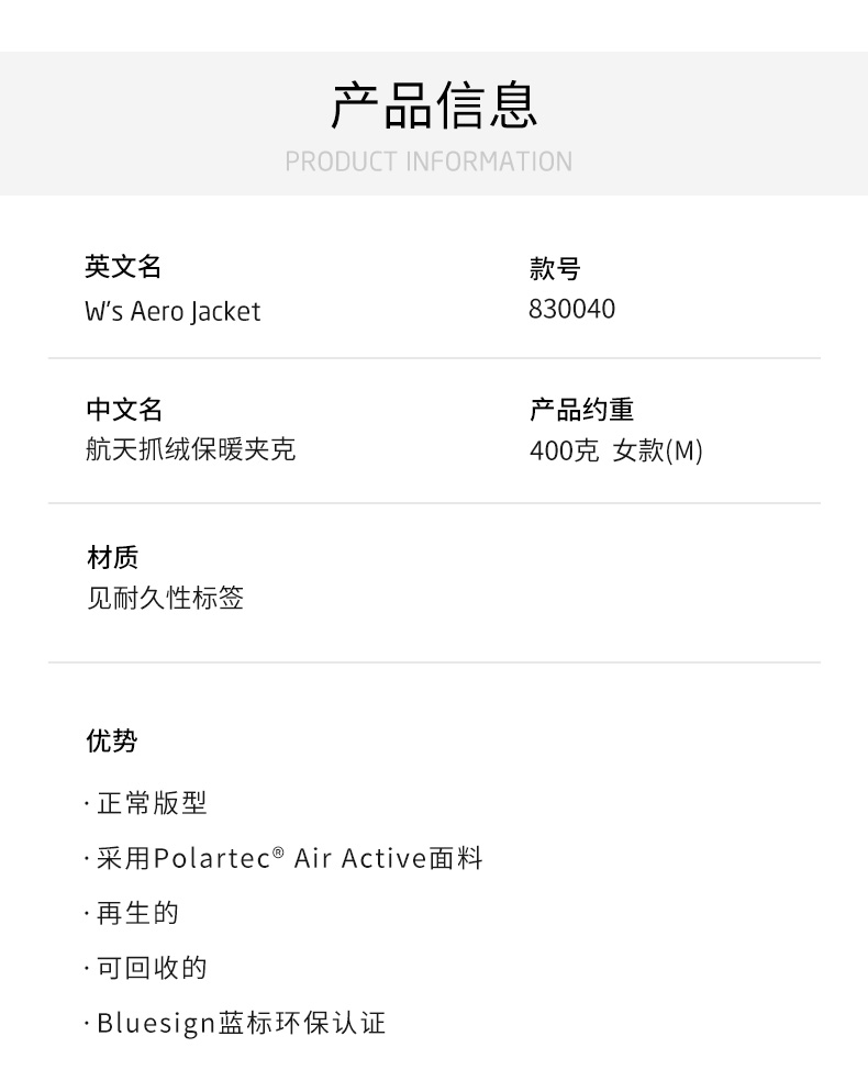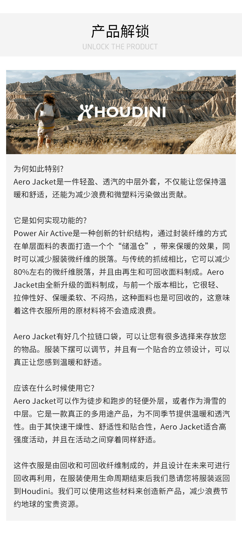 HOUDINI胡丁尼 Aero Jacket 航天户外女立领抓绒衣夹克外套 830040