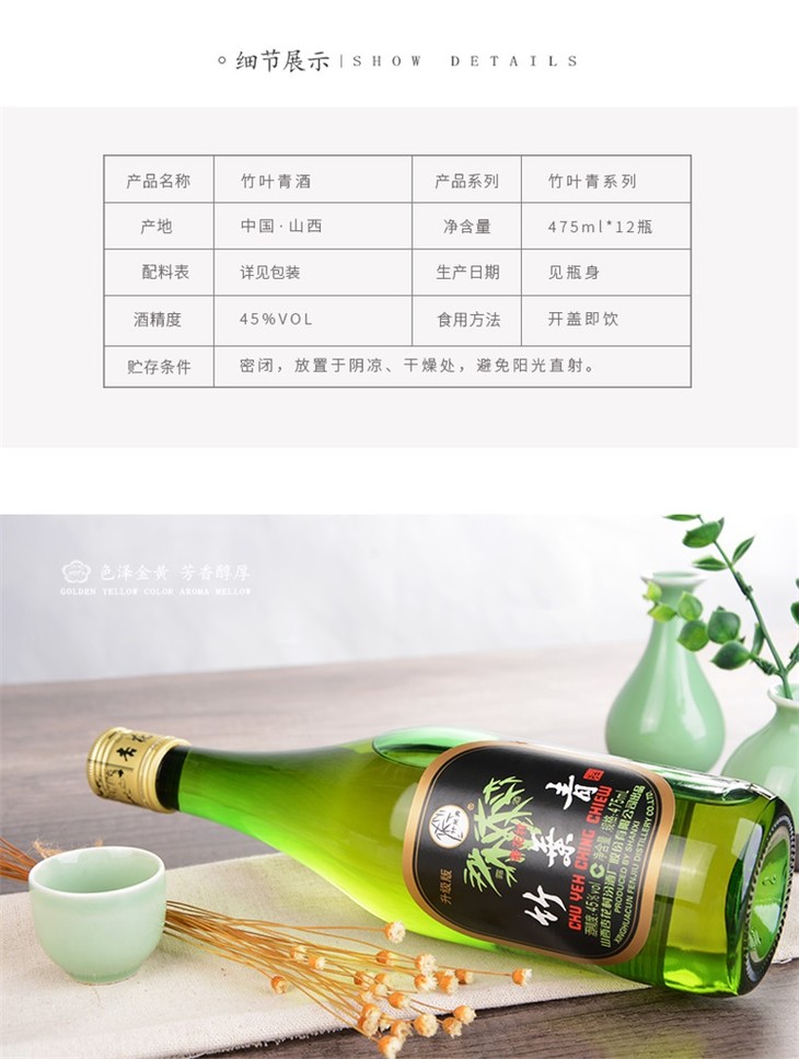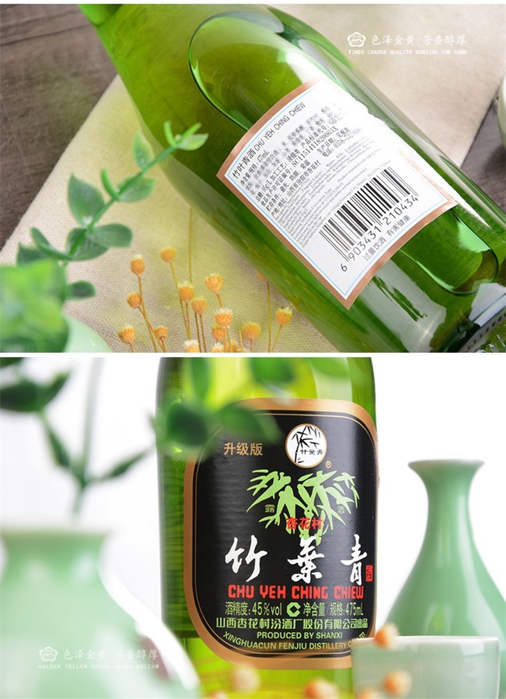 山西汾酒杏花村酒 竹叶青酒45度475mL*6瓶装国产清香型白酒