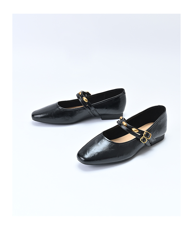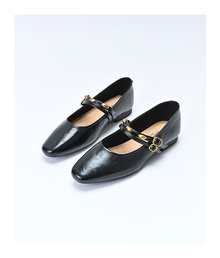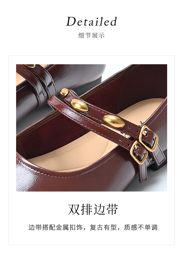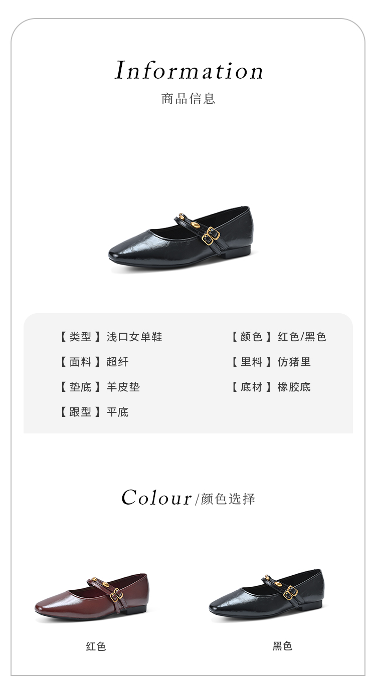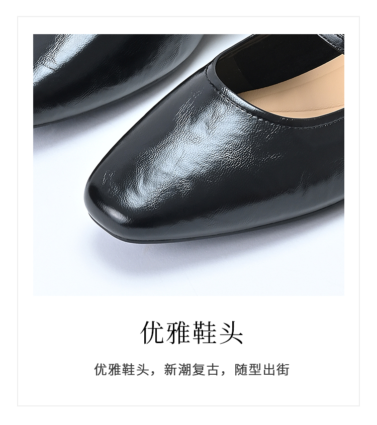 经典鲨2025年春季款纯色复古小方头浅口舒适平底气质单鞋女KW89-517021