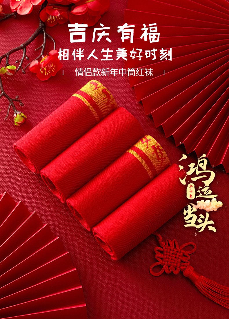 雅黛丽红袜子结婚情侣一对男女喜袜红色袜子短袜中筒袜本命年婚庆DYM06306/307/403/405