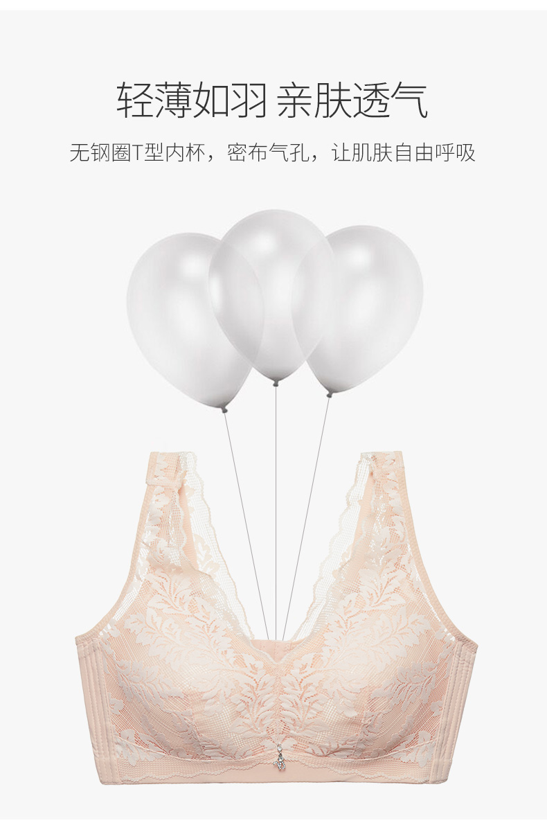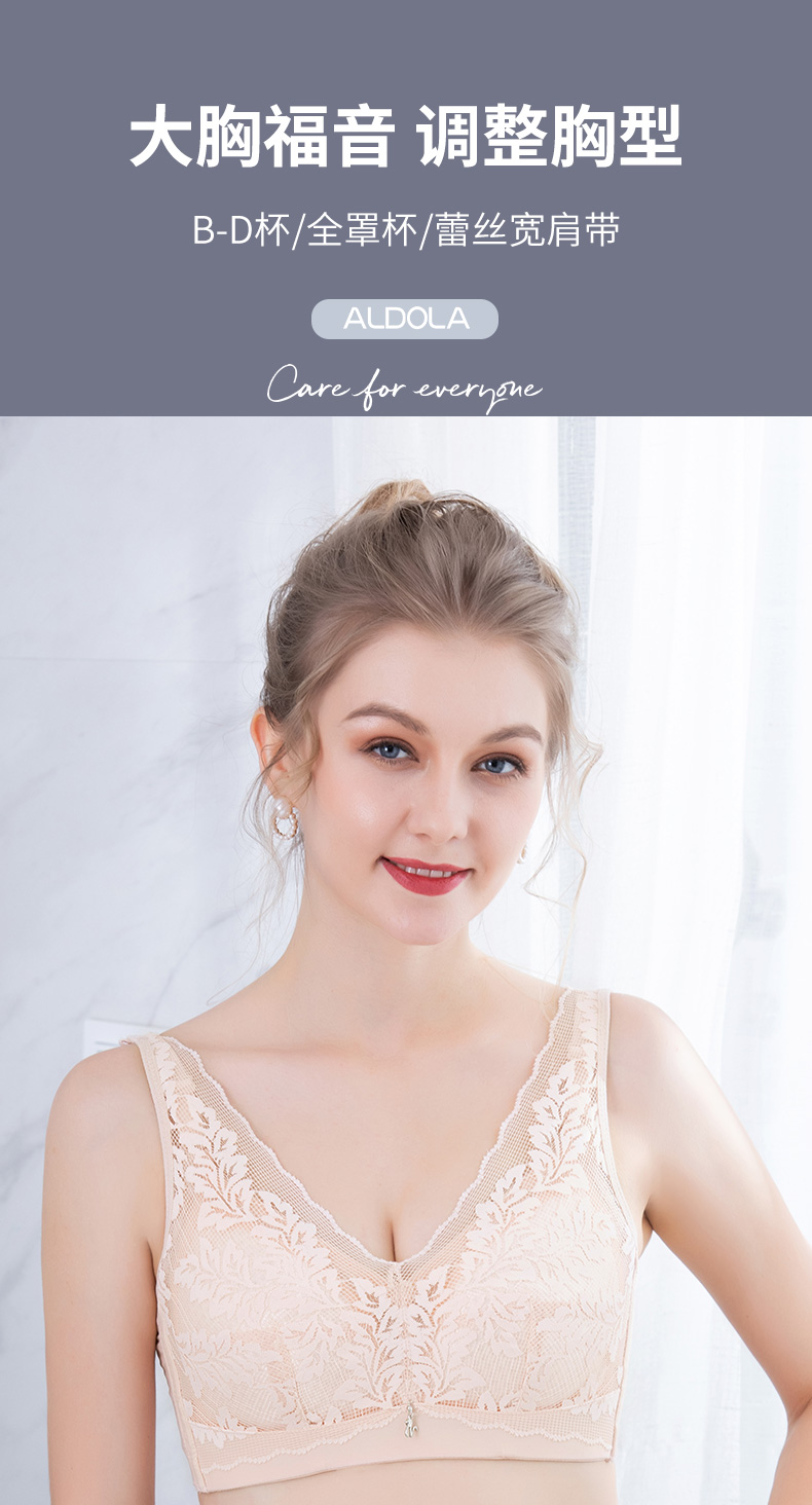 雅黛丽品牌内衣女薄款大胸显小聚拢无钢圈调整型收副乳防下垂文胸